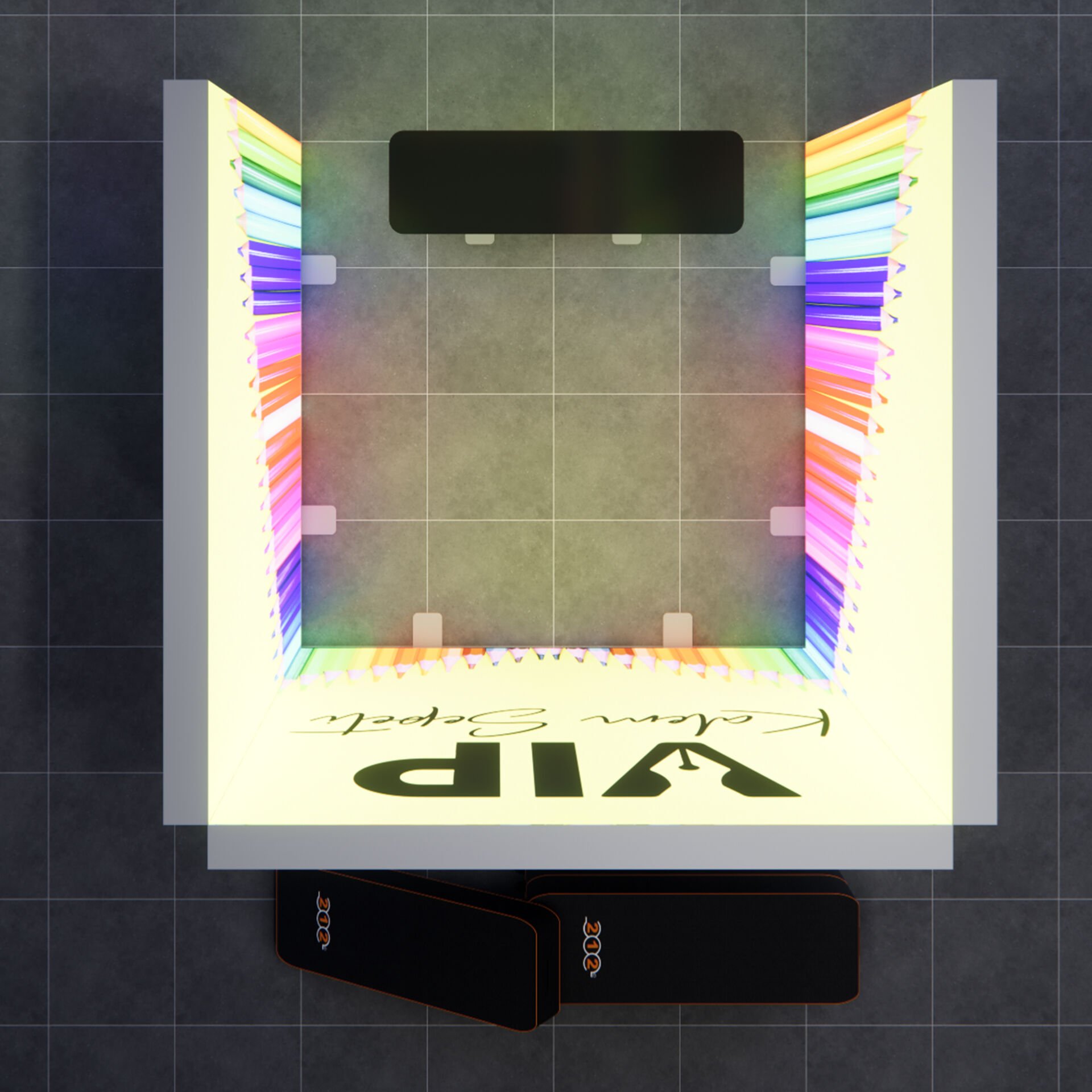 Kompakt ve Simetrik U Yapısı: 2x2m h225cm Lightbox U Stand, dar alanlarda (2x2m) kullanılmak üzere optimize edilmiştir. 2 metrelik cephe ve 2 metrelik iki yan duvar, stant içinde kapalı ve etkileyici bir görsel alan oluşturur.