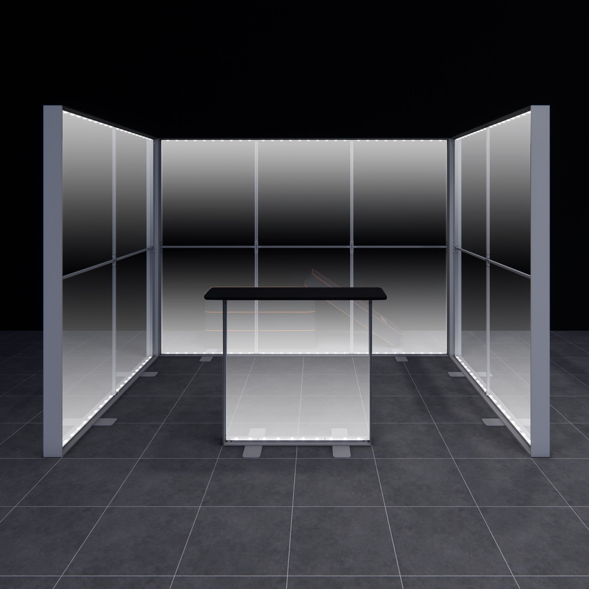 Geniş Asimetrik U Yapısı: 2x3m h225cm Lightbox U Stand, 3 metrelik ana cephesi ile geniş görsel mesajınız için yeterli alan sağlar. 2 metrelik iki yan duvar ise stant içinde daha kapalı ve odaklanmış bir alan yaratır.