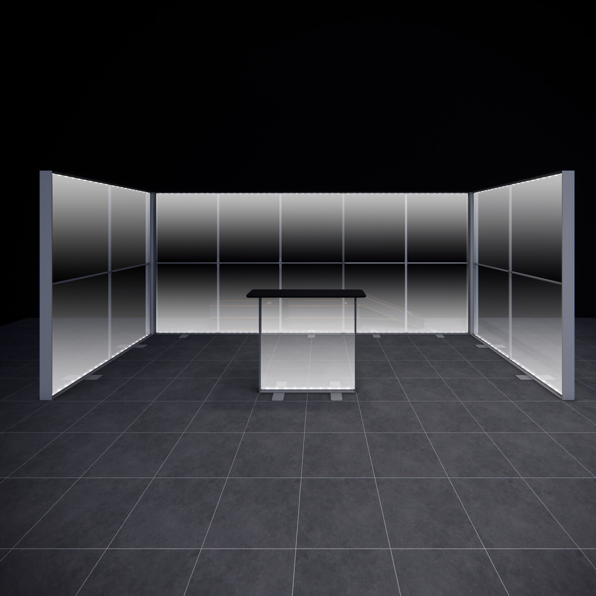 Devasa Asimetrik U Yapısı: 2x5m h225cm Lightbox U Stand, 5 metrelik ana cephesi ile geniş görsel mesajınız için maksimum alan sağlar. 2 metrelik iki yan duvar ise stant içinde daha kapalı ve odaklanmış bir alan yaratır.