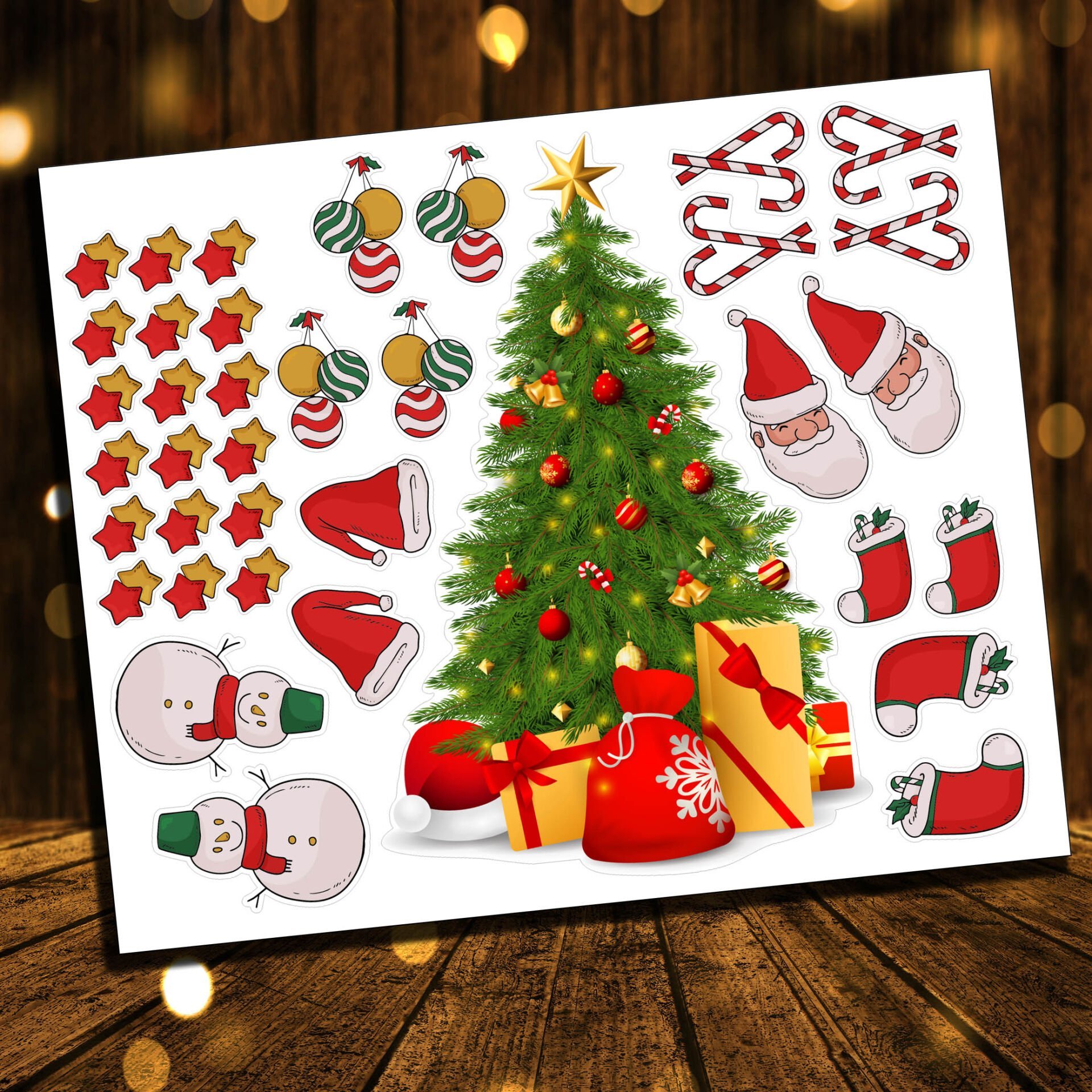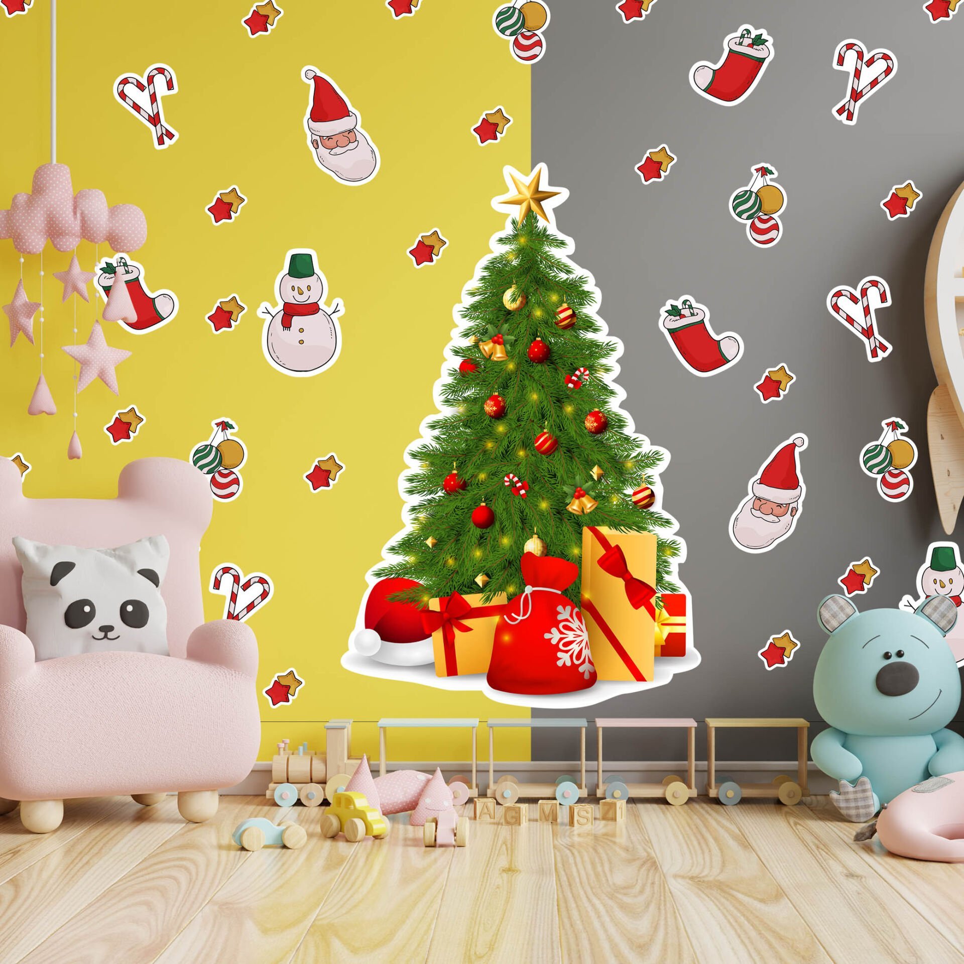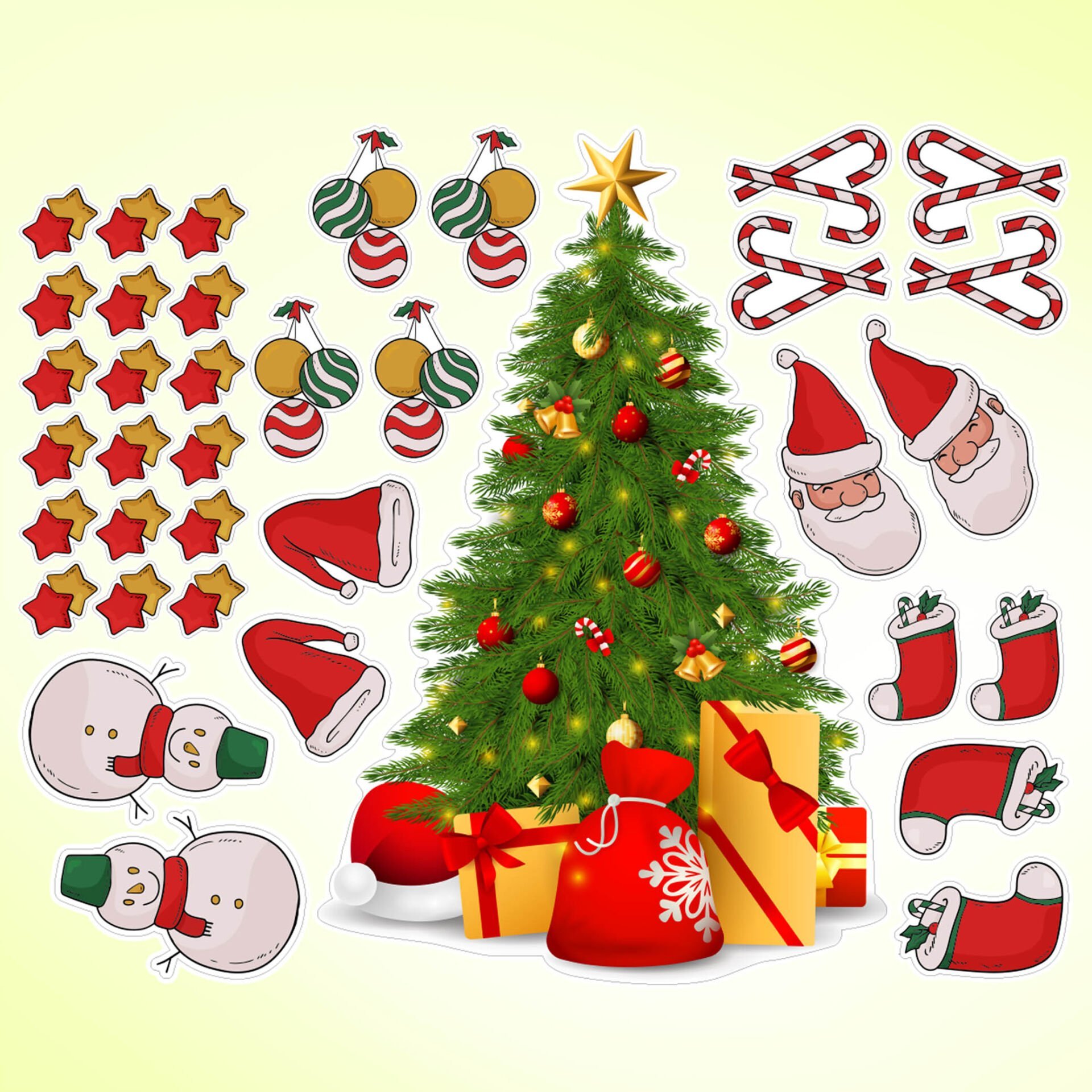 35 Parça Yeni Yıl Temalı Büyük Yılbaşı Ağacı Çocuk Odası Duvar Cam Sticker Seti