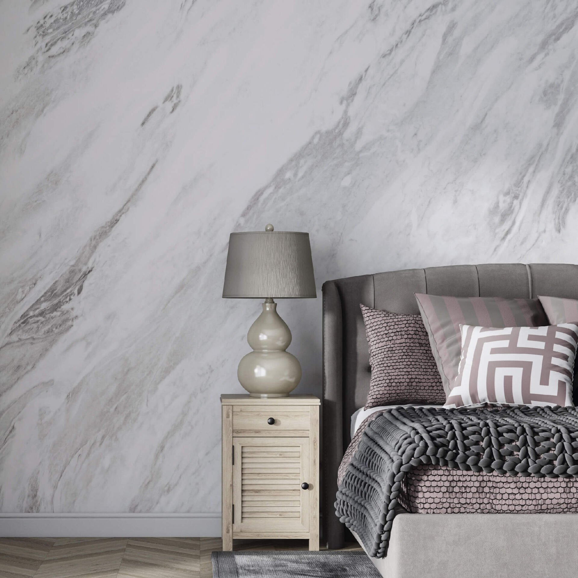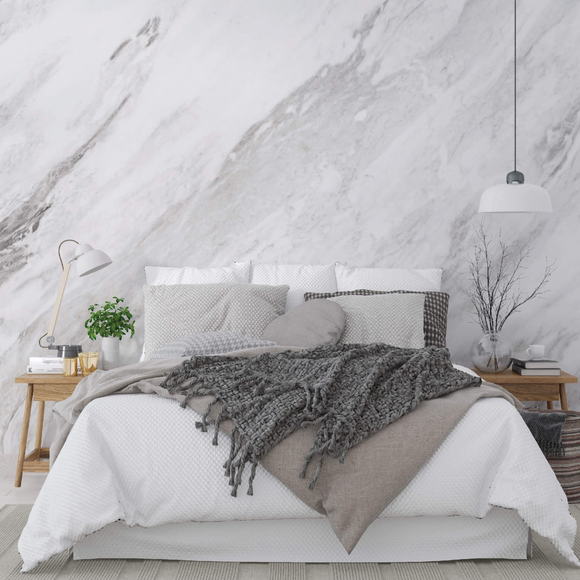 Beyaz Mermer Desen Salon Ofis Yatak Odası Duvar Kağıdı