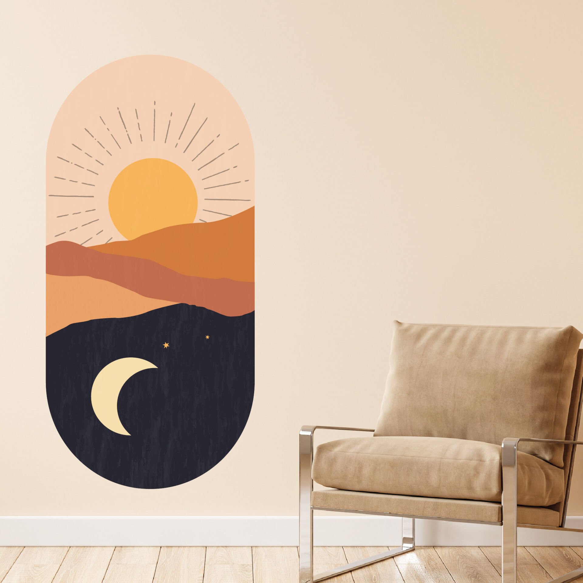 Boho Bohem Tarz Güneş Ay Dağlar Elips Duvar Sticker