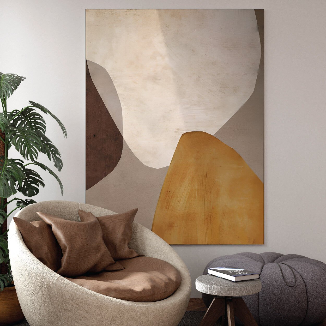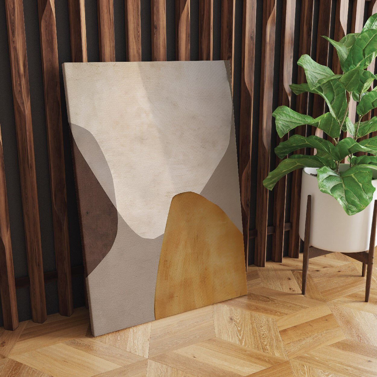 Boho Bohem Tarz Sarı Soyut Tema Kanvas Tablo