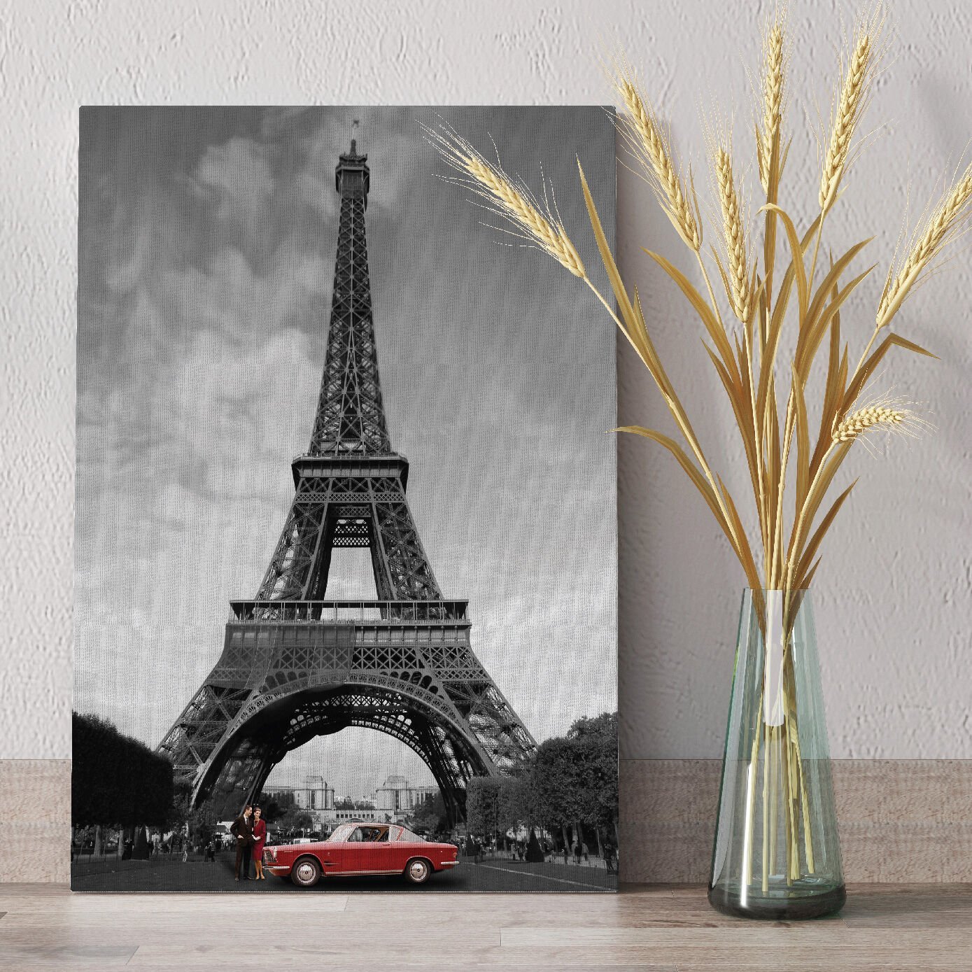 Eyfel Kulesi ve Kırmızı Araba Dekoratif Kanvas Tablo