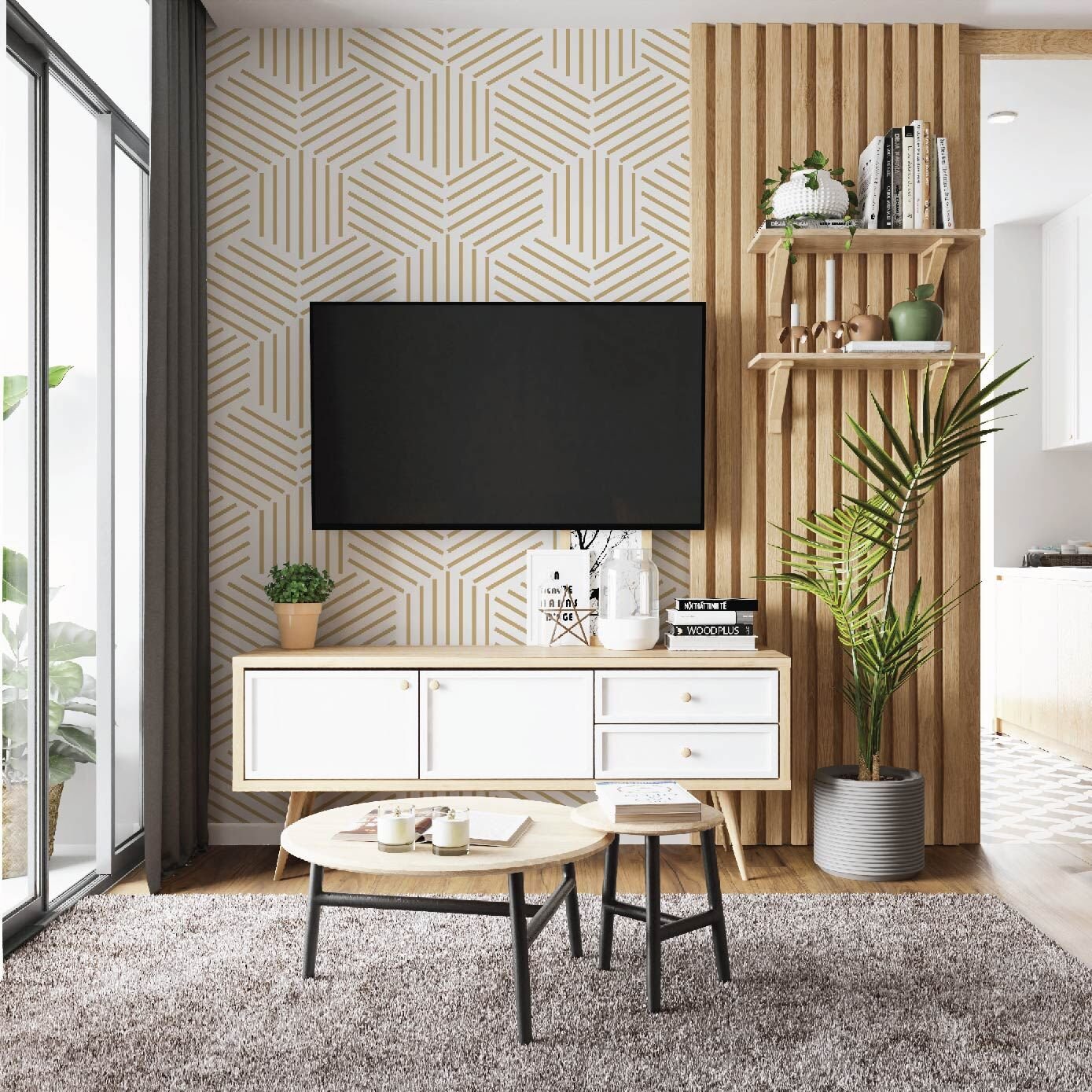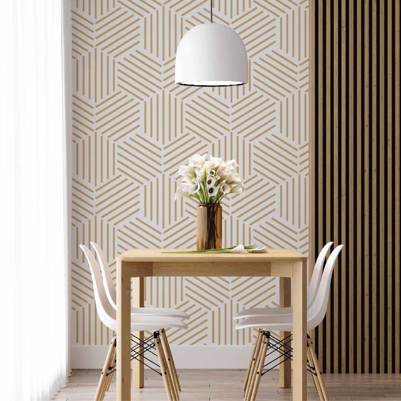 Gold Beşgen Desen Salon Mutfak Duvar Kağıdı