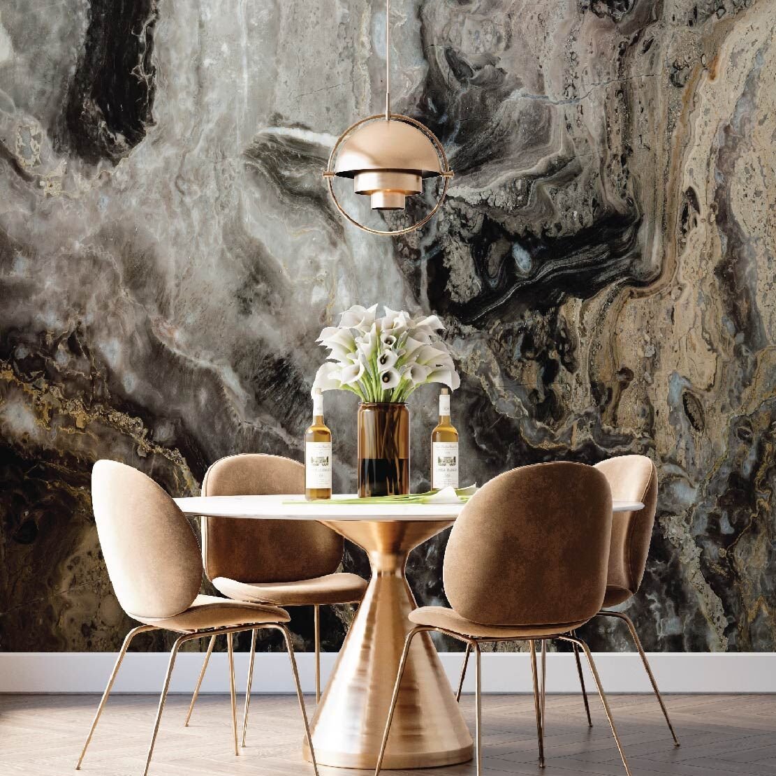 Gold Siyah Mermer Salon Ofis Mutfak Duvar Kağıdı