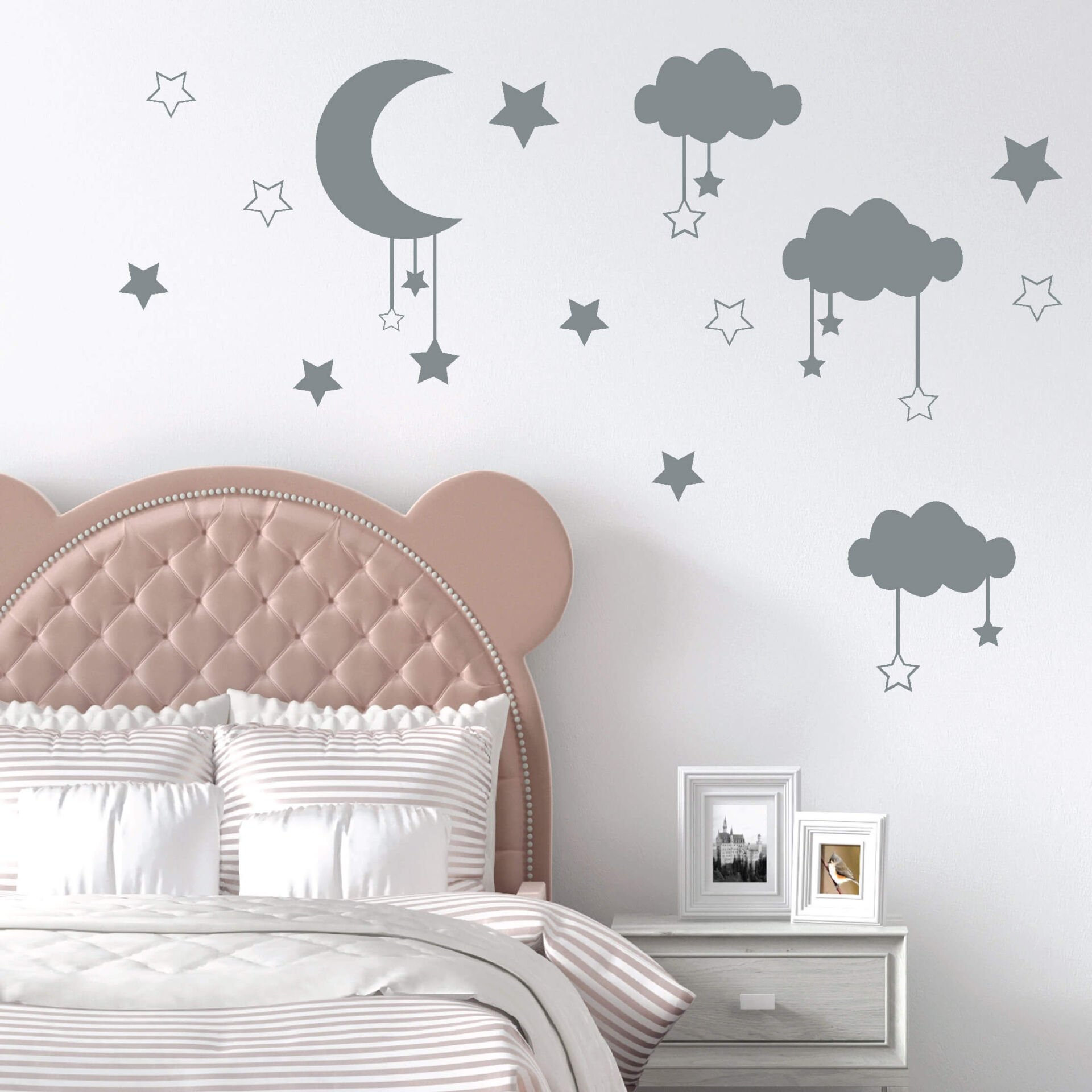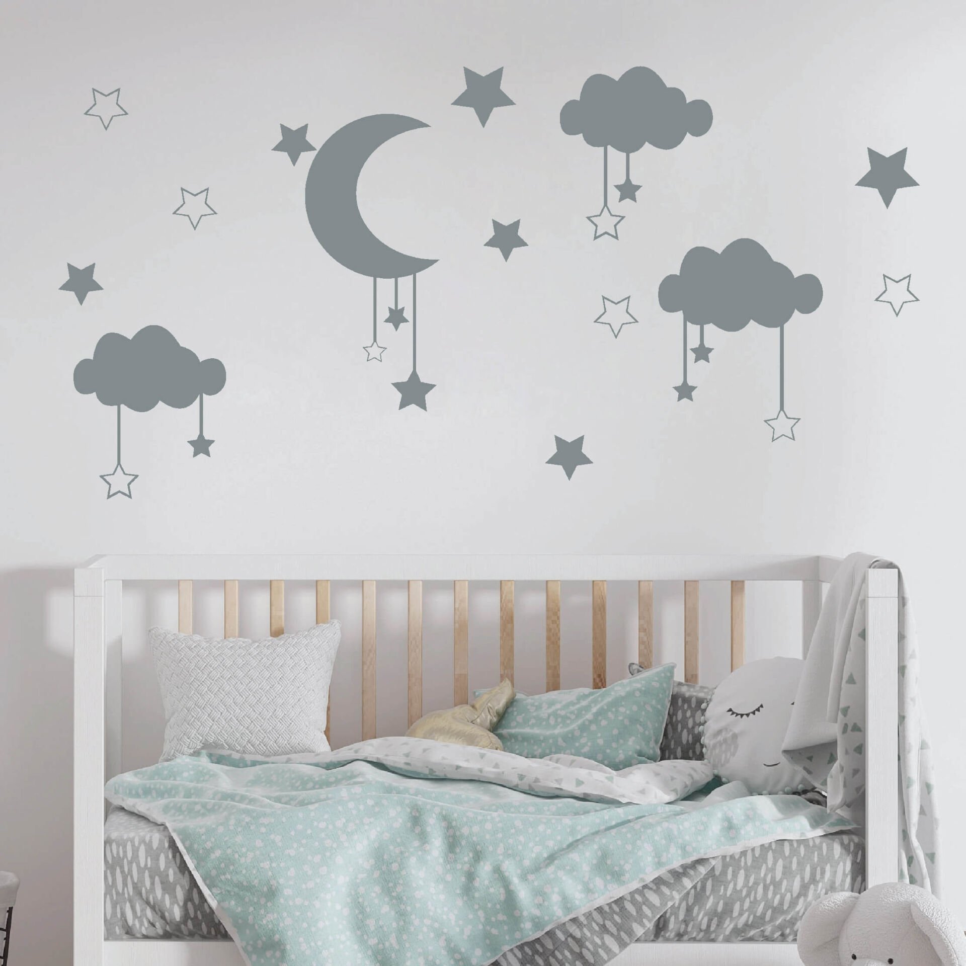 Gri Yıldız, Ay ve Bulutlar Bebek Çocuk Odası Sticker