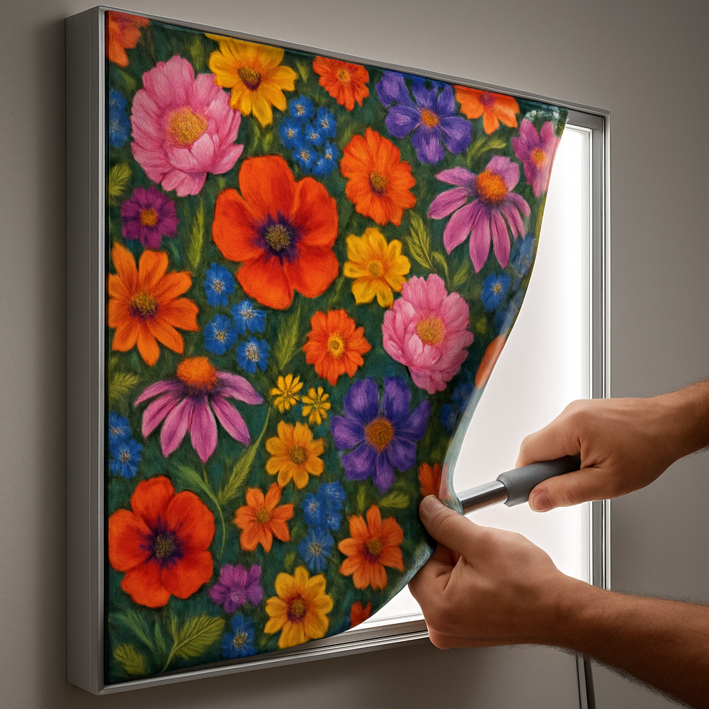 Mat ve Yansımasız Sunum: Kumaşın mat yüzey yapısı, ışık yansımalarını (parlamayı) tamamen ortadan kaldırır. Bu, özellikle fotoğraf ve sanat eserlerinin sergilendiği fuar standları, galeriler ve aydınlatmanın güçlü olduğu mağaza içi alanlarda görselin her açıdan net ve doğal görünmesini sağlar.