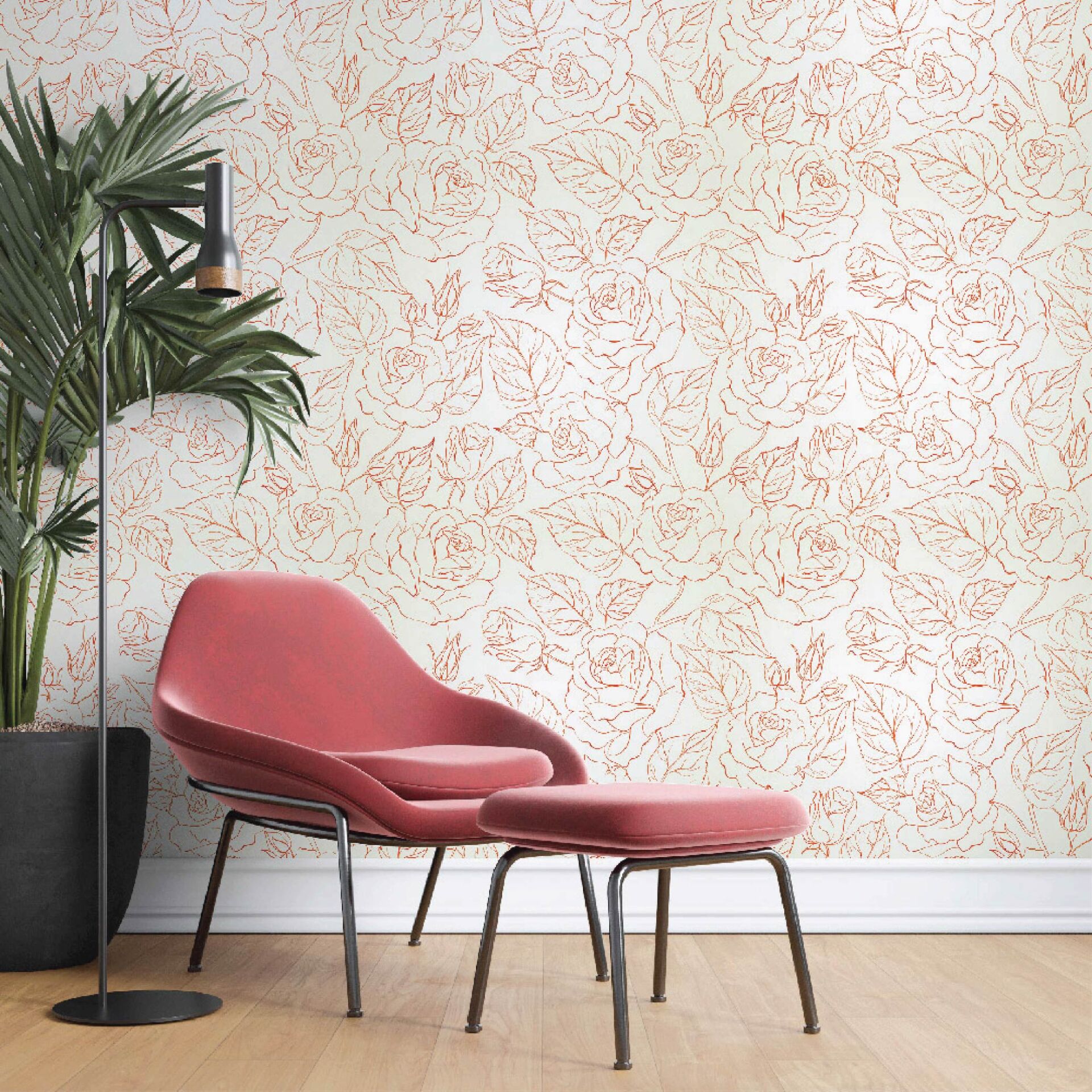 Kırmızı Gül Deseni Salon Duvar Kağıdı