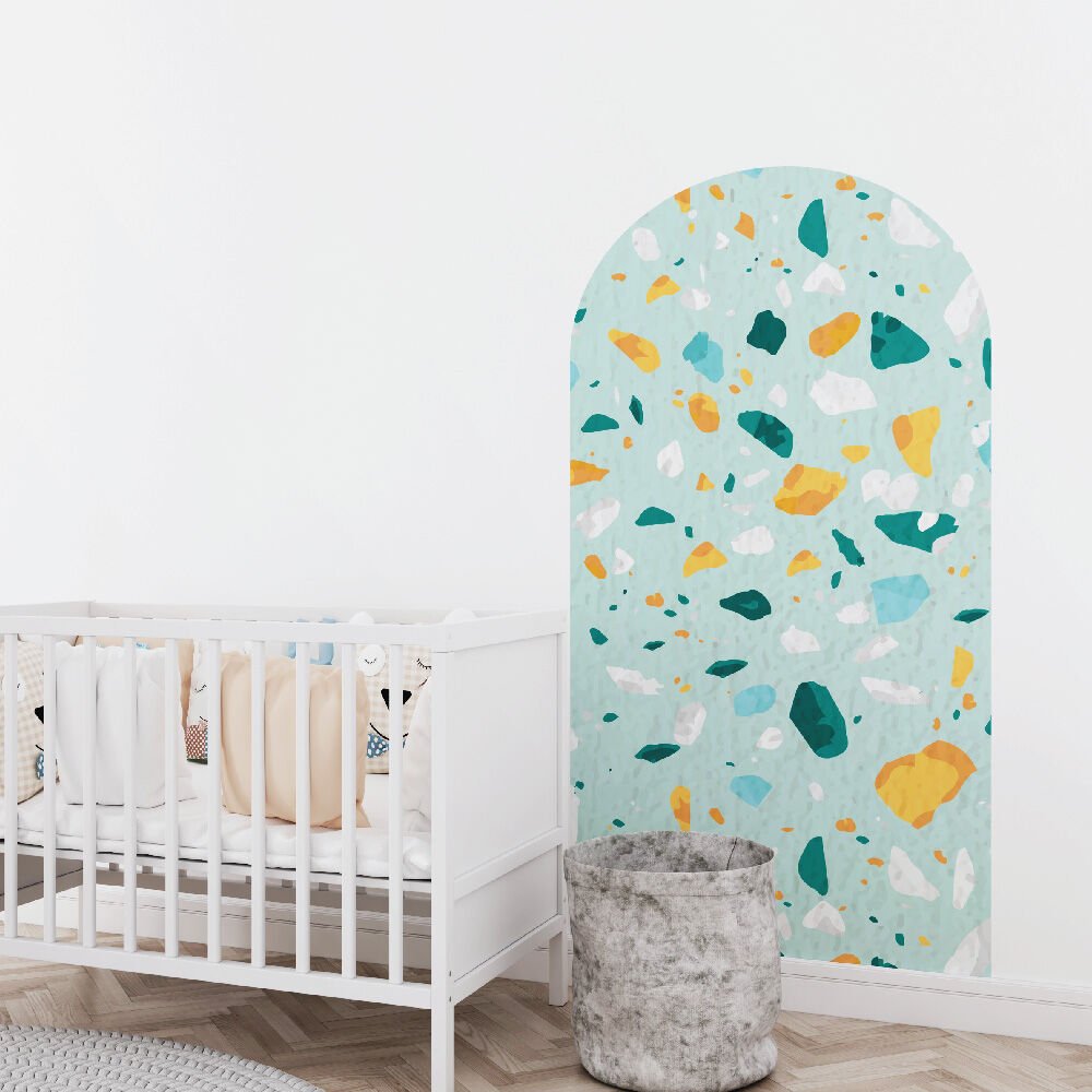 Mavi Taş Desen Boho Bohem Tarz Oval Duvar Sticker
