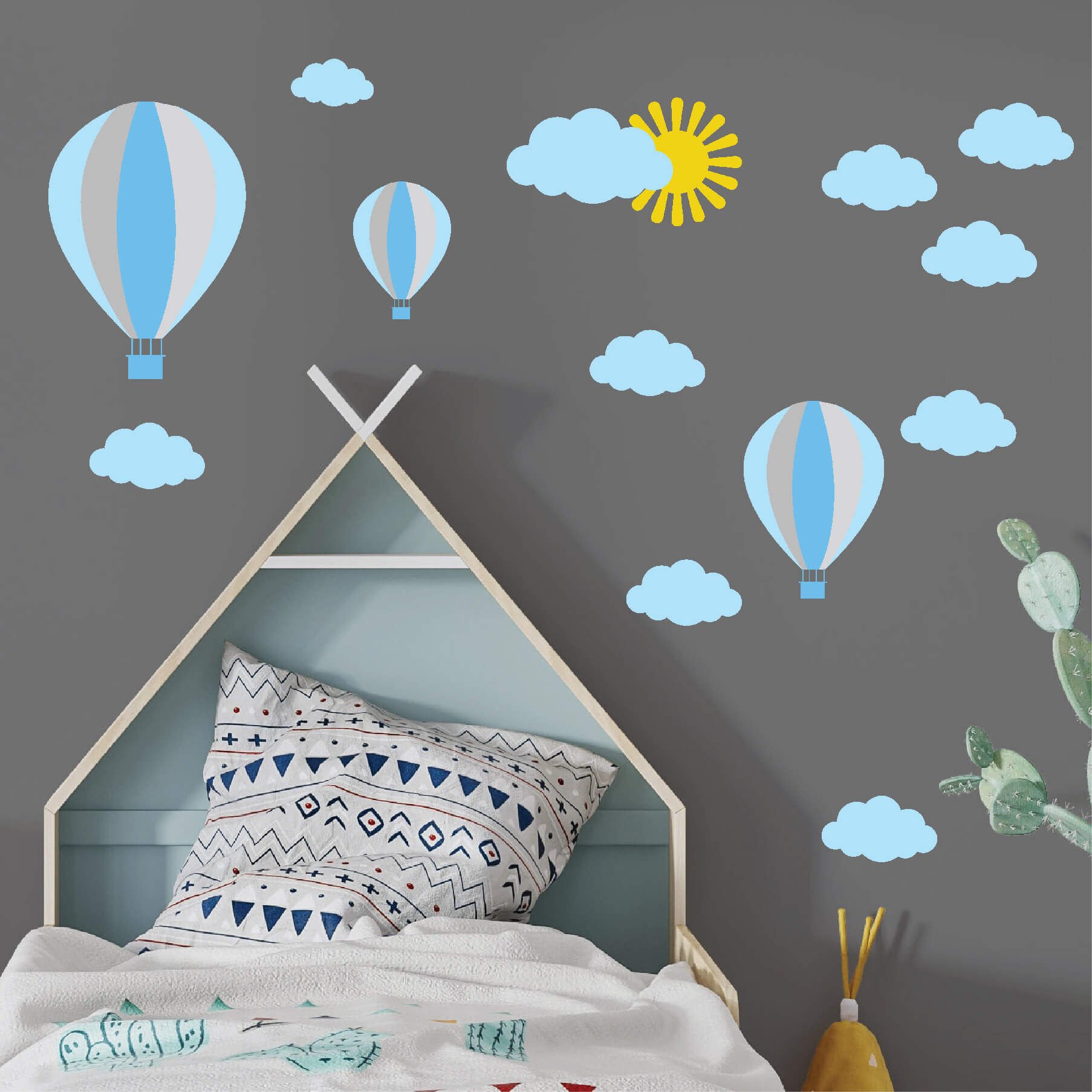 Mavi Uçan Balonlar ve Bulut Bebek Çocuk Odası Sticker