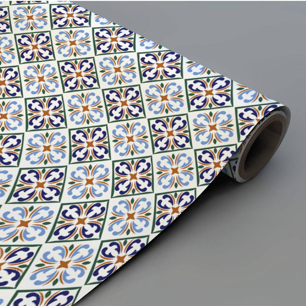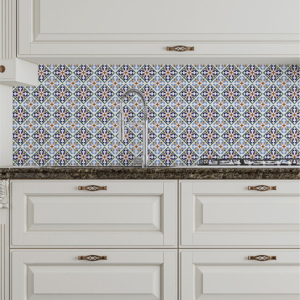 Mutfak Fayans Mavi Fayans Deseni Folyo
