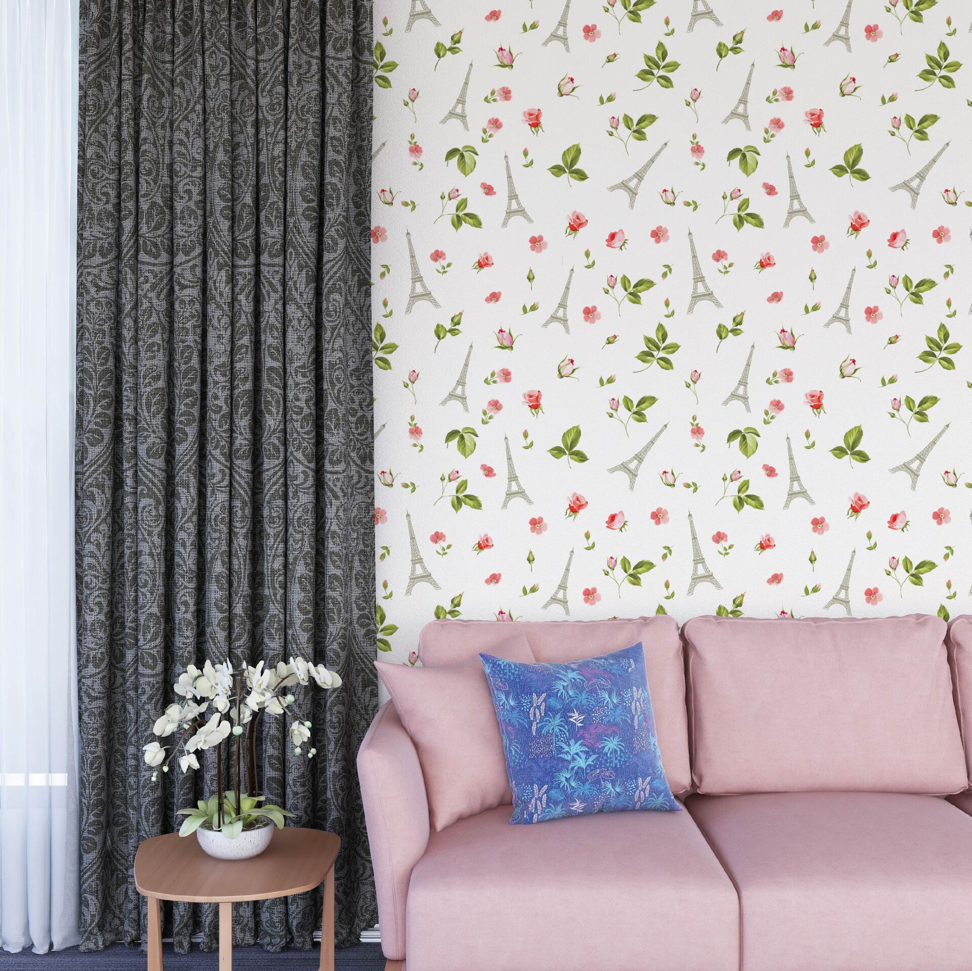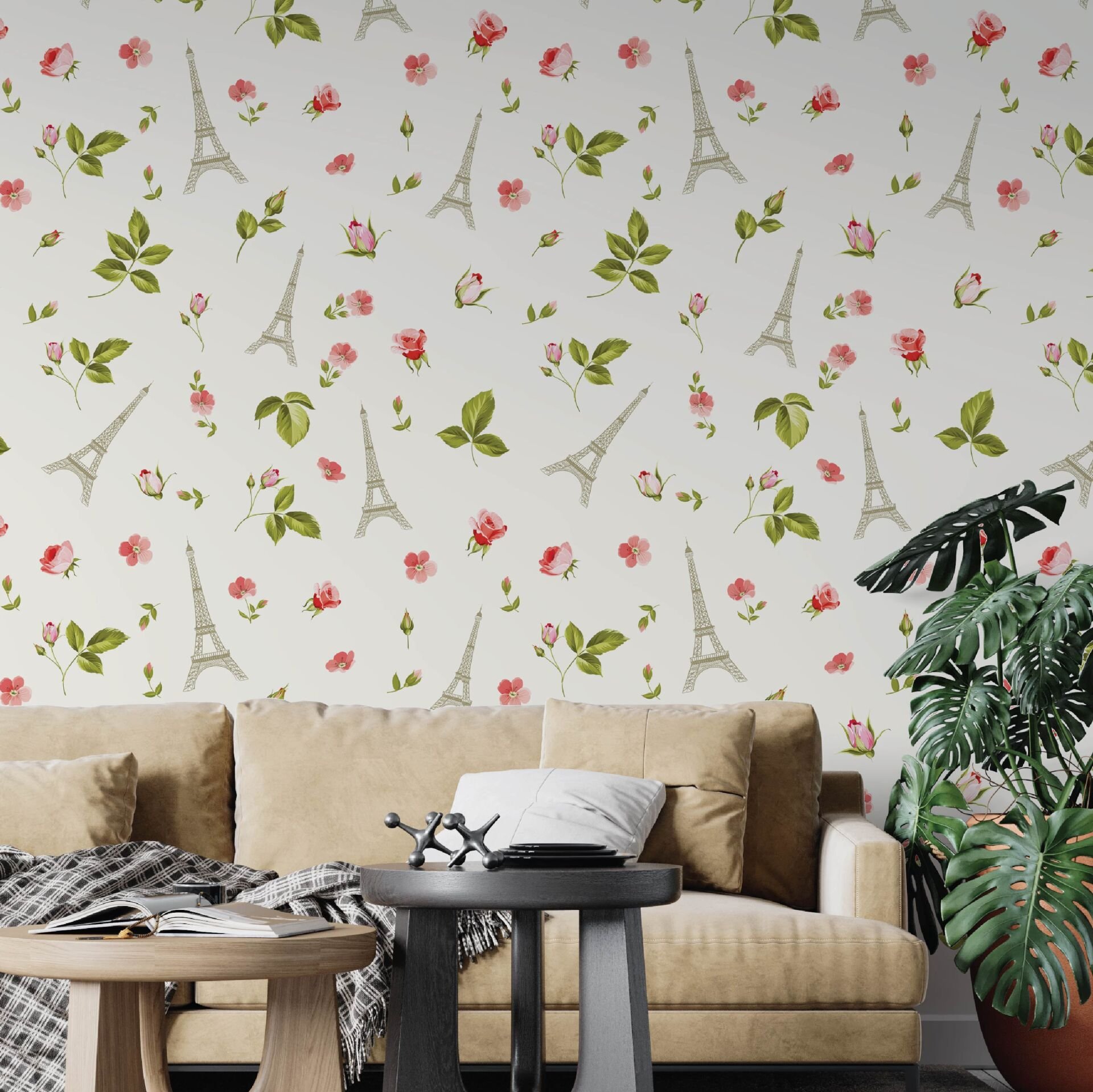 Paris Kulesi Yeşil Yapraklar Salon Duvar Kağıdı