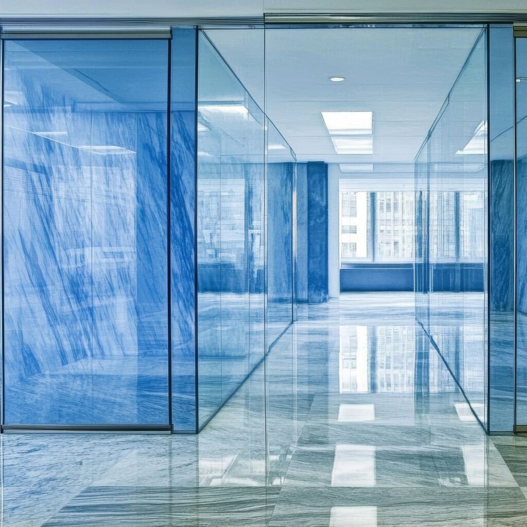 Cevap 3: Parlak bitiş, uygulanan yüzeyin parlak camın doğal görünümüyle bütünleşmesini sağlar. Baskı renklerinin ışığı yansıtarak daha canlı, foto-gerçekçi ve ıslak bir görünümde olmasını sağlar. Ancak mat bitişin aksine, spot ışığı altında parlama (glare) yapma eğilimi yüksektir.