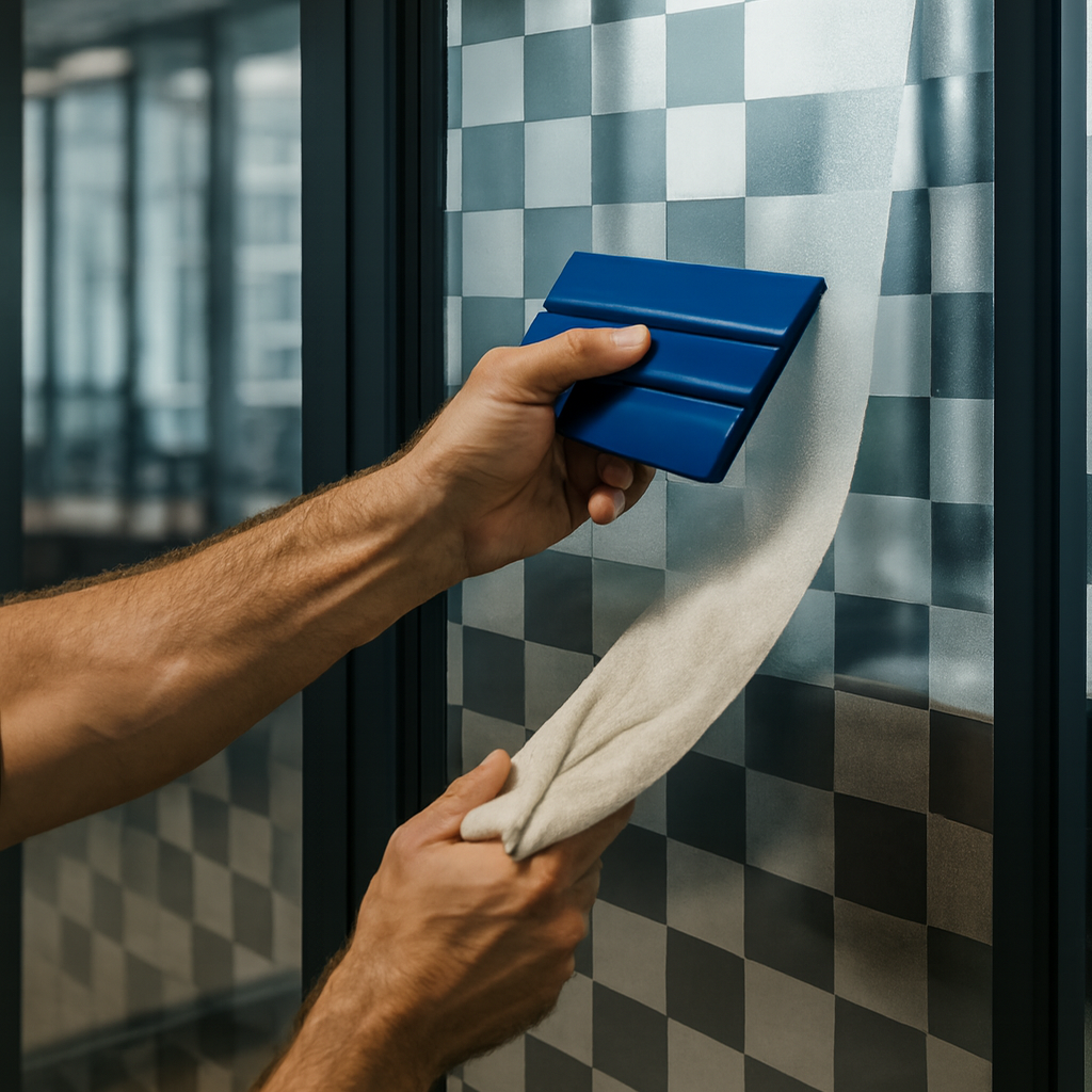 Şeffaf Yapı ve Bütünlük: Şeffaf yapışkan ve folyo sayesinde, baskı yapılmayan cam kısımlar tamamen şeffaf kalır. Bu, cam yüzeyinize doğal bir görsel filtre eklemiş gibi bir etki yaratır, arka plandaki ışık geçişini korur.