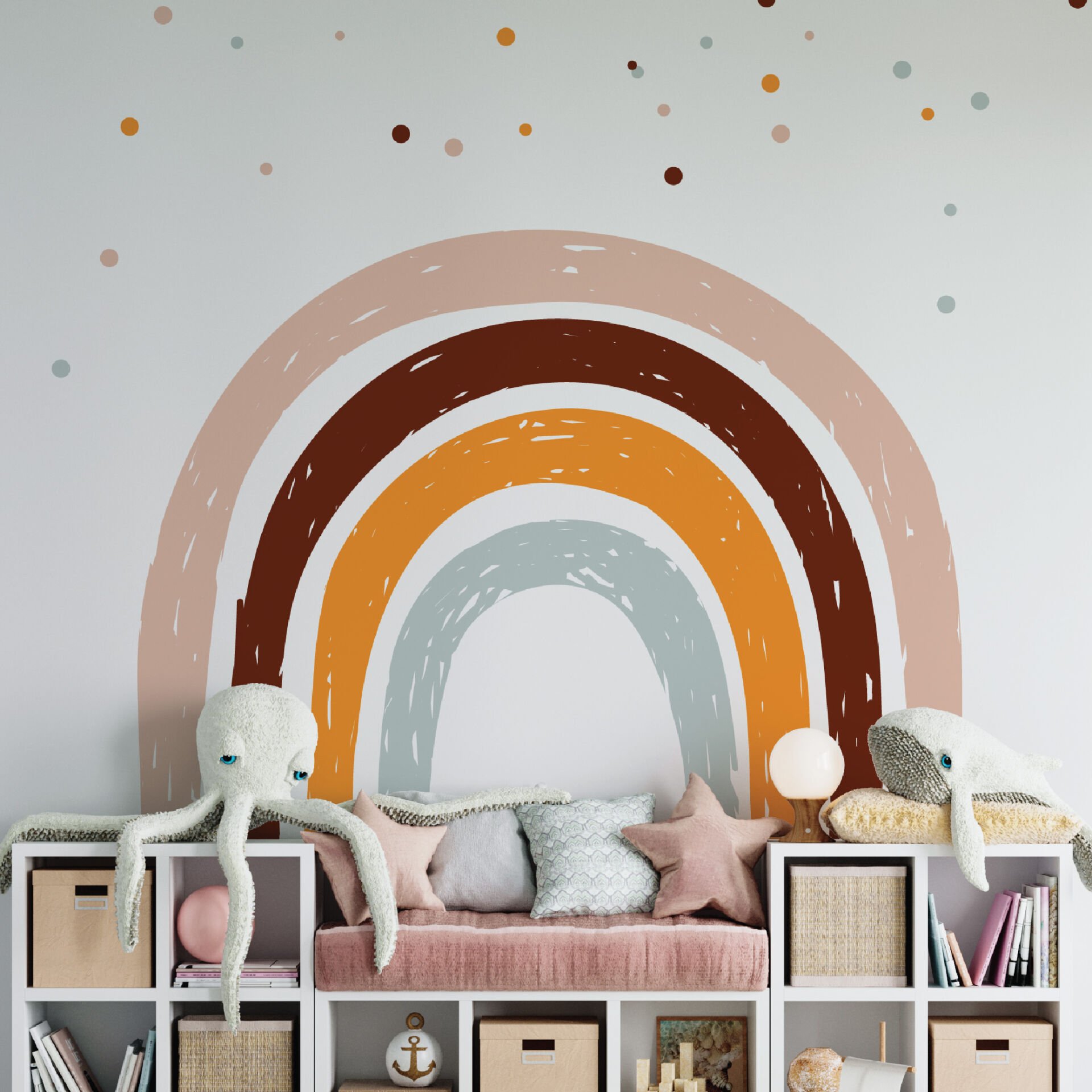 Pastel Renk Soft Gökkuşağı ve Puantiyeler Çocuk Odası Duvar Sticker