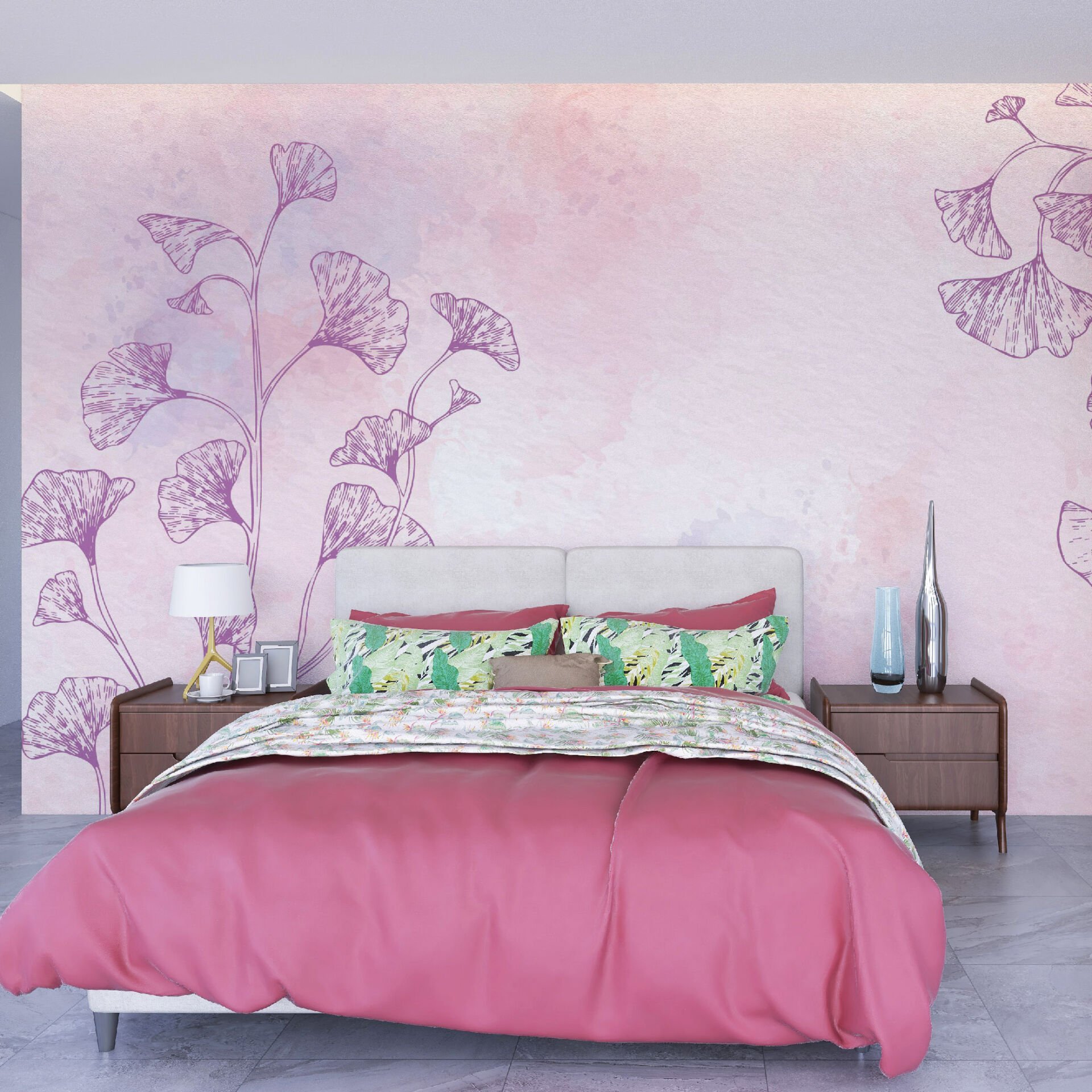Pembe Çiçek Desen Duvar Kağıdı