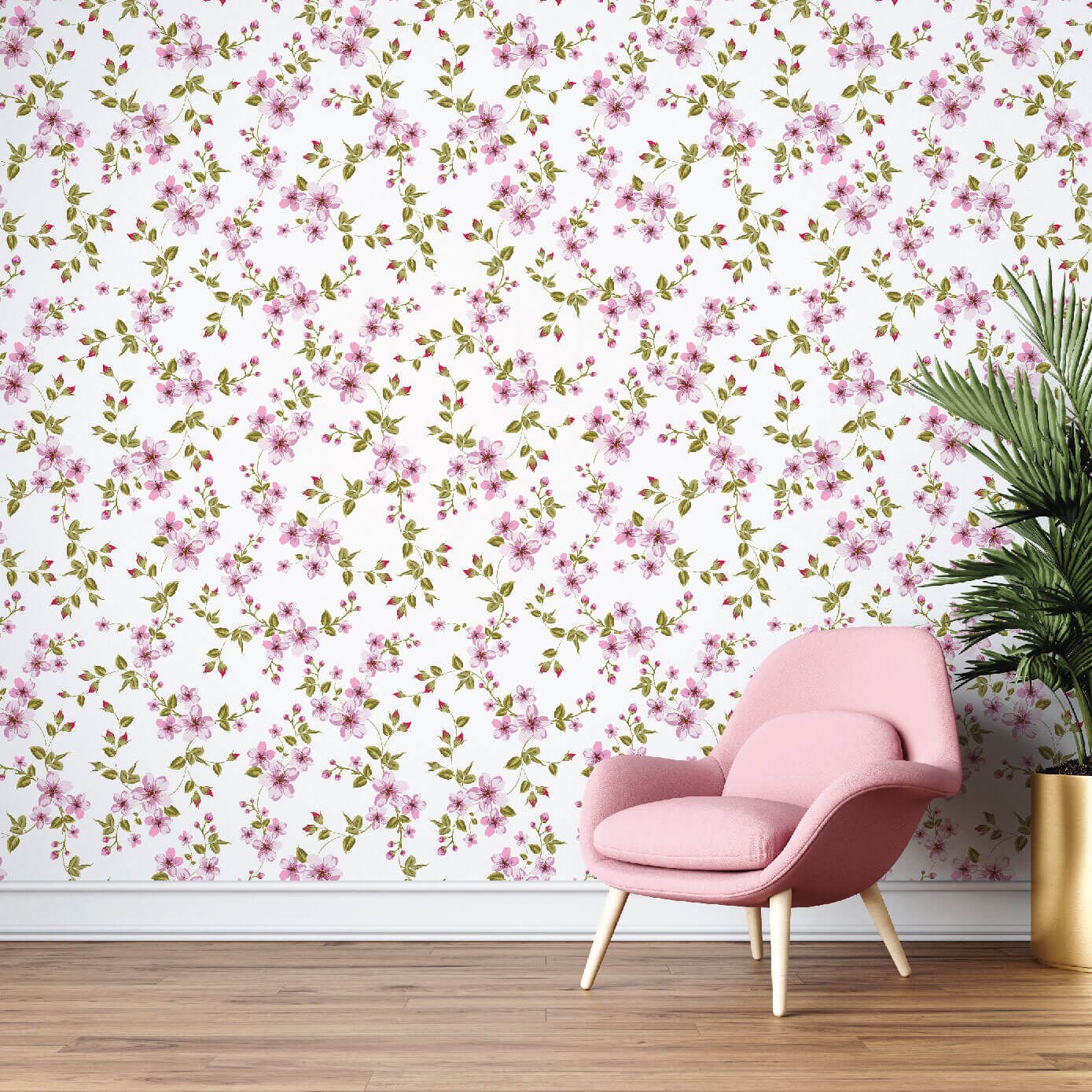 Pembe Kır Çiçekleri Salon Yatak Odası Duvar Kağıdı