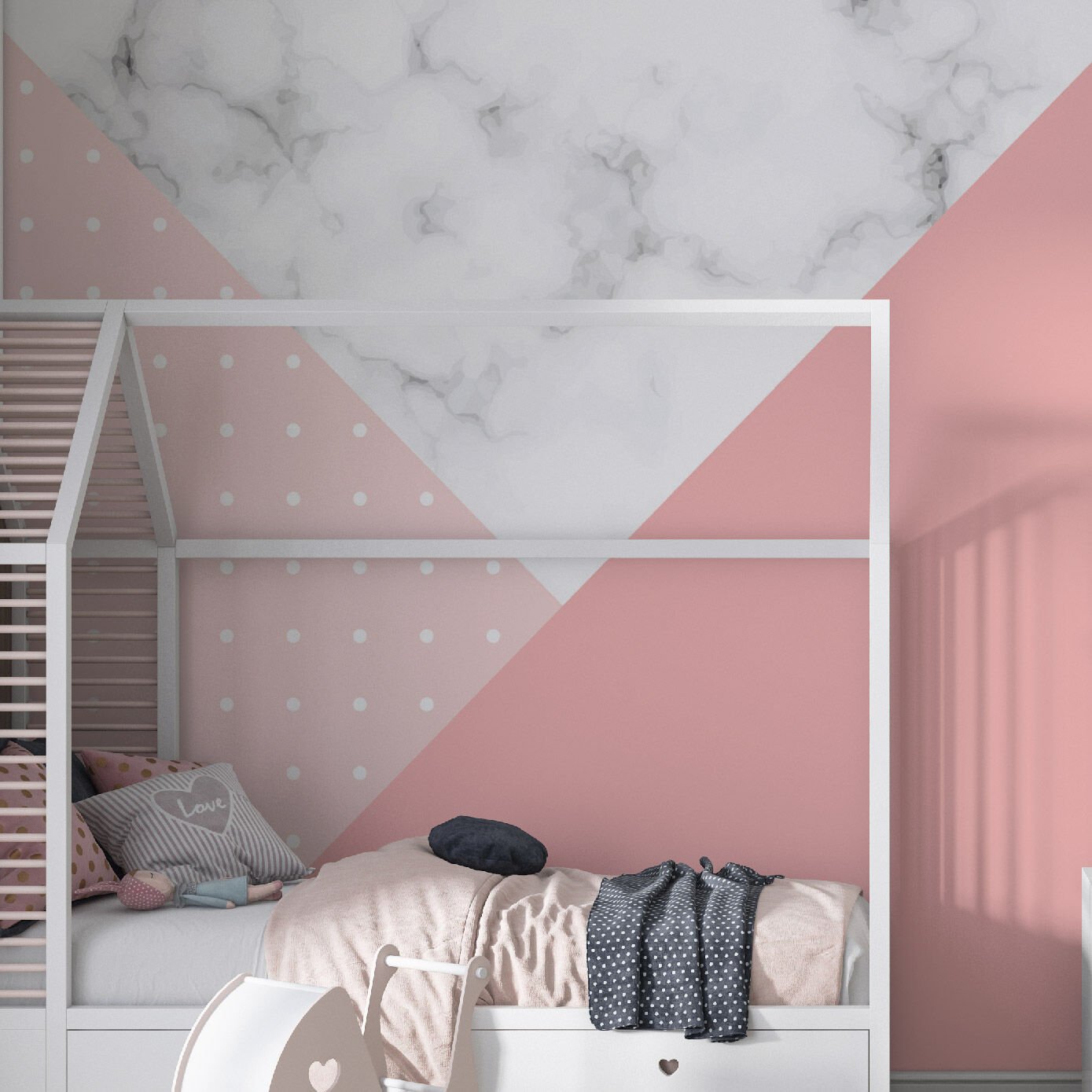Pembe Puantiye ve Mermer Yatak Odası Duvar Kağıdı