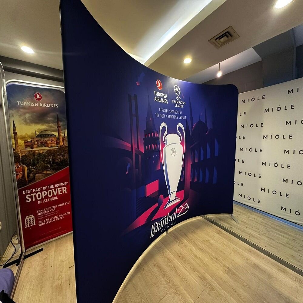 Bayrak, flama, reklam kumaşı, spor etkinliği pankartı, tavan sarkıtı, iç ve kısa süreli dış mekân reklamları