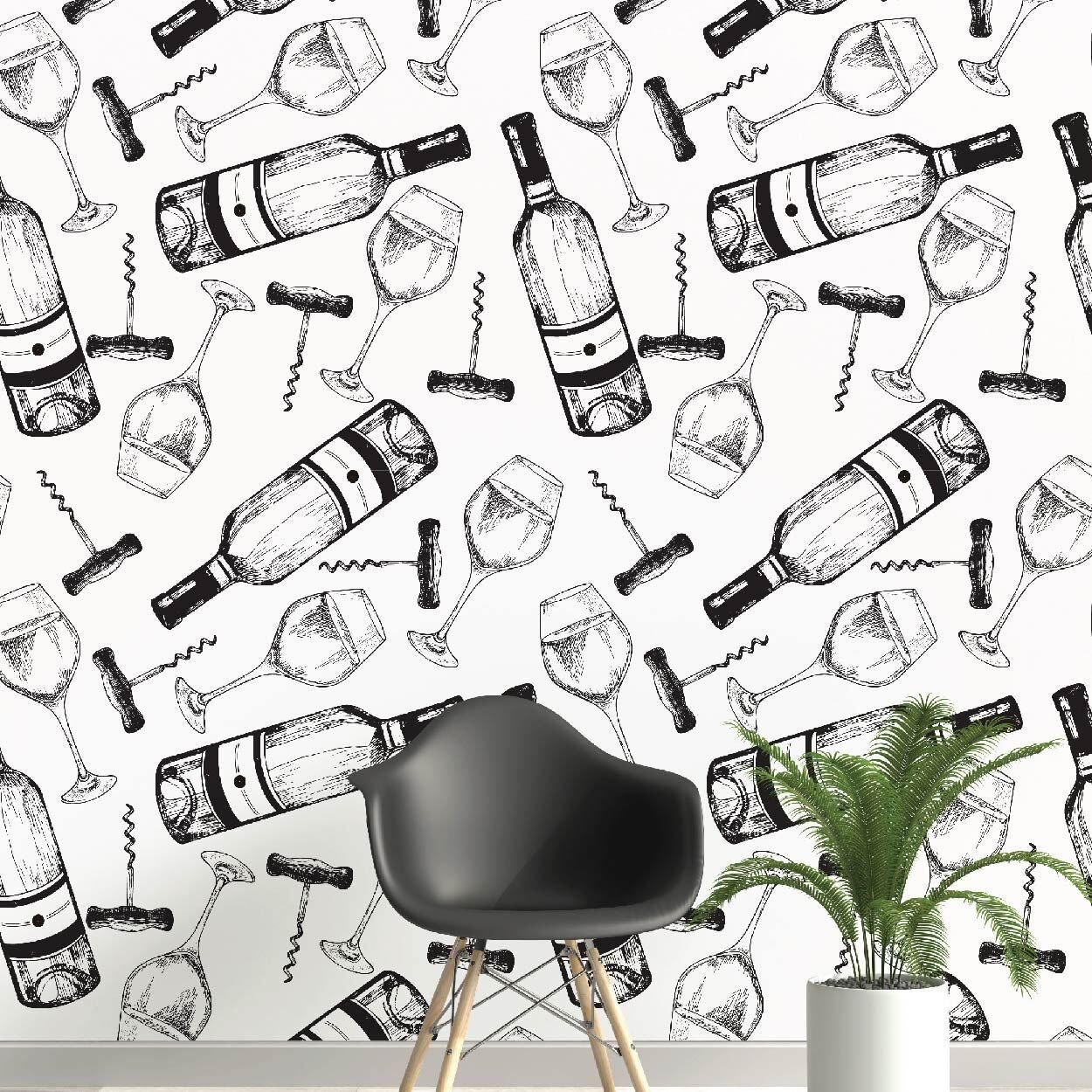 Şarap ve Şarap Bardakları Salon Mutfak Duvar Kağıdı