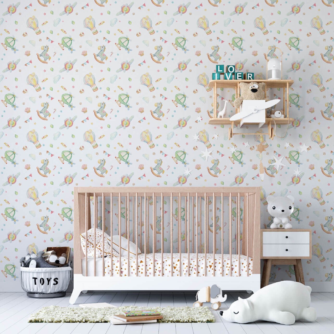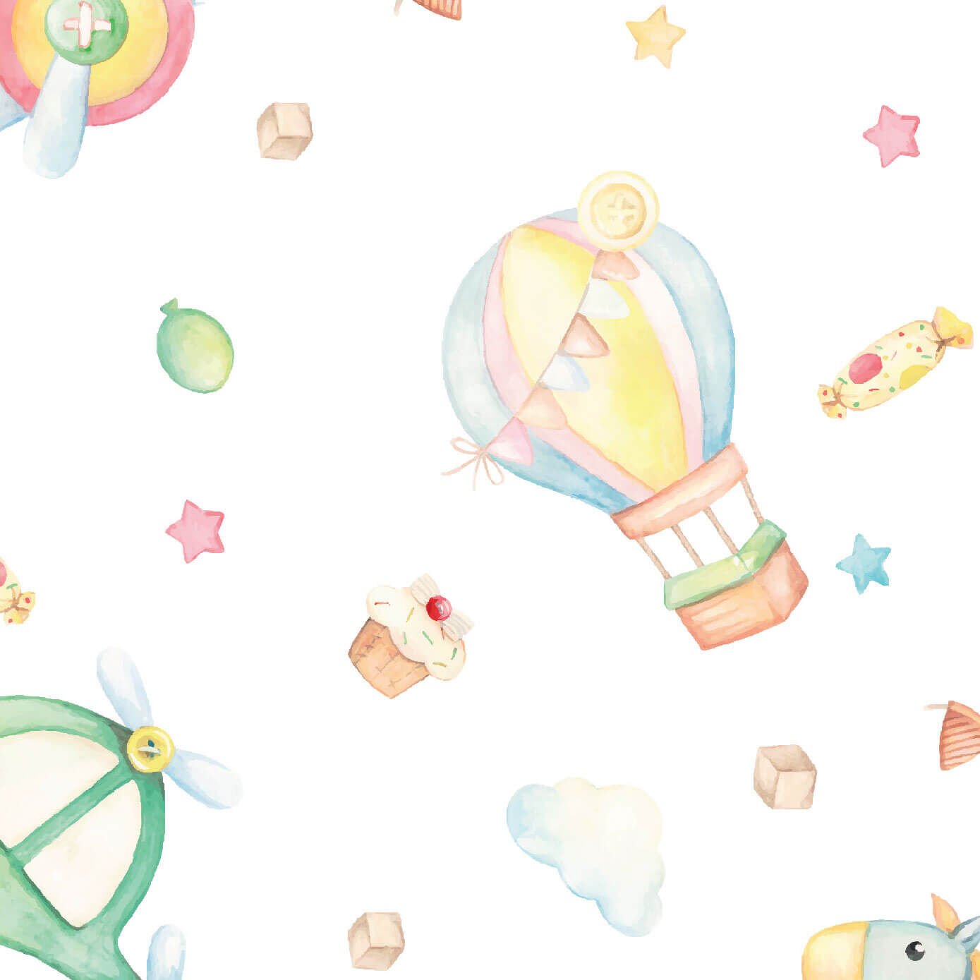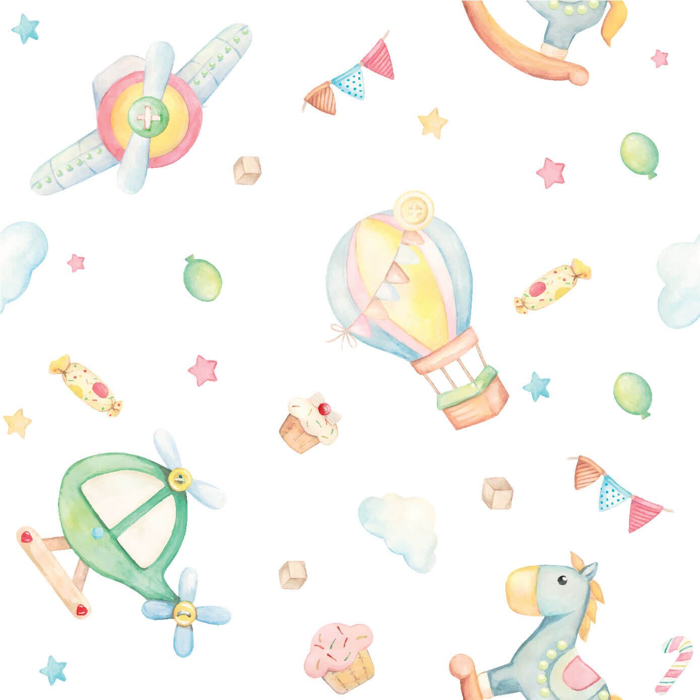 Sevimli Oyuncaklar Suluboya Bebek Odası Duvar Kağıdı