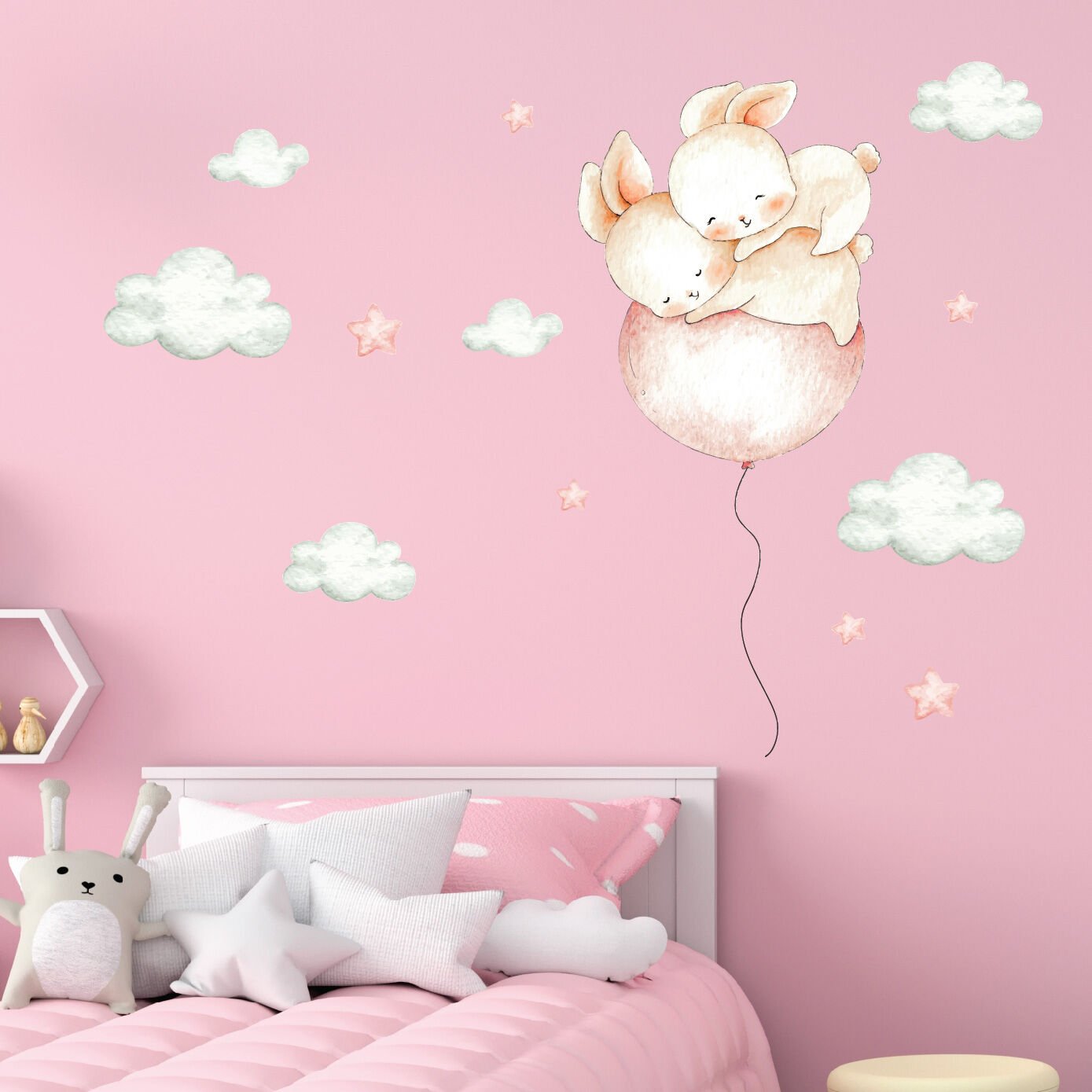 Sevimli Tavşan ve Bulut ve Yıldızlar Sticker Seti