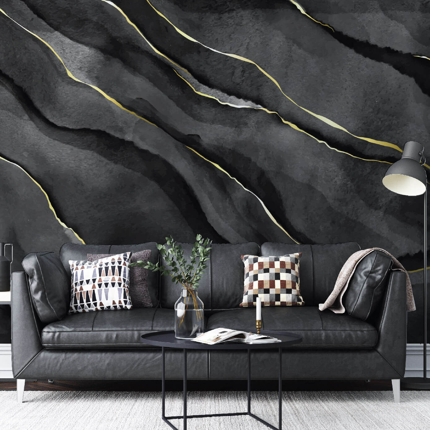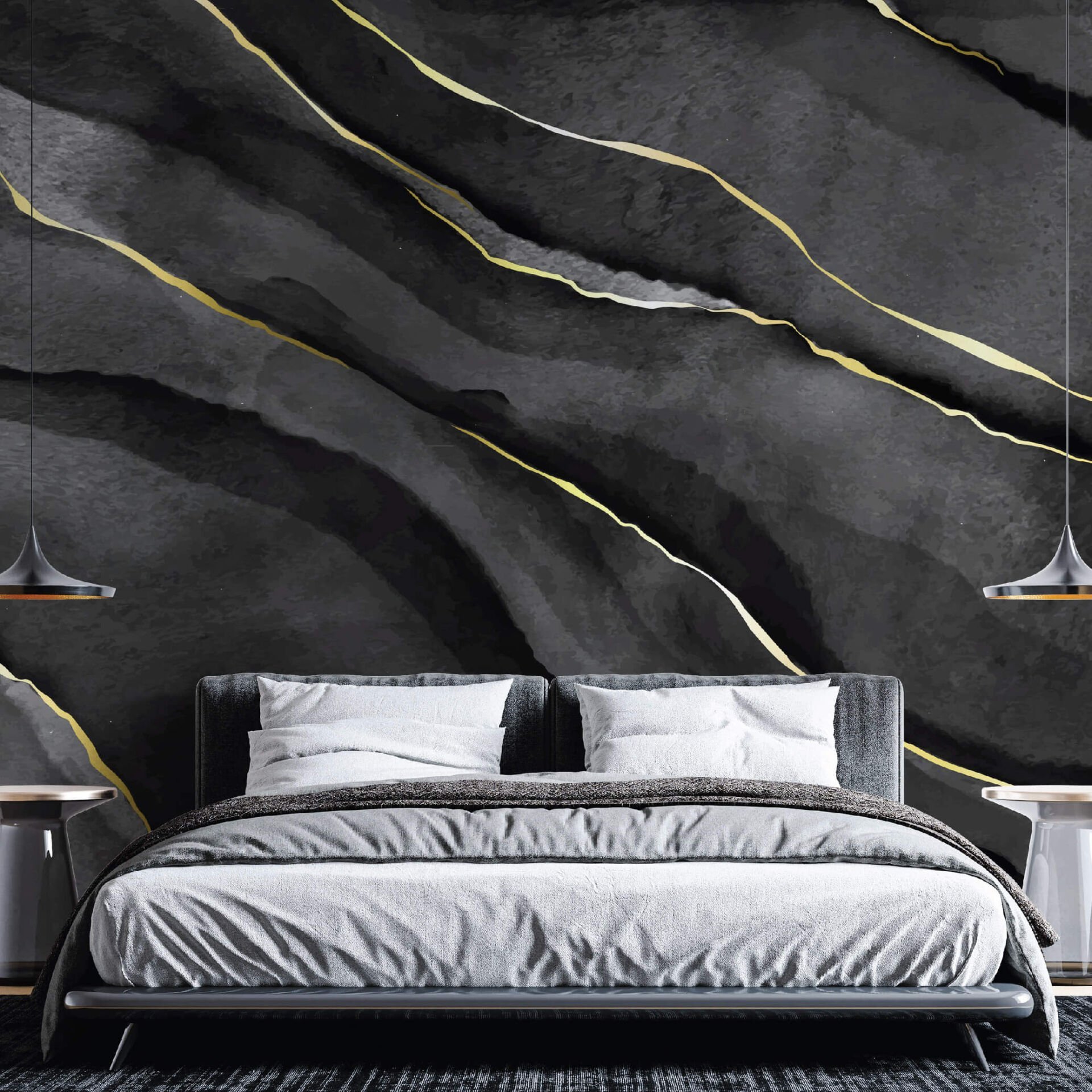Siyah Gold Mermer Salon Ofis Yatak Odası Duvar Kağıdı