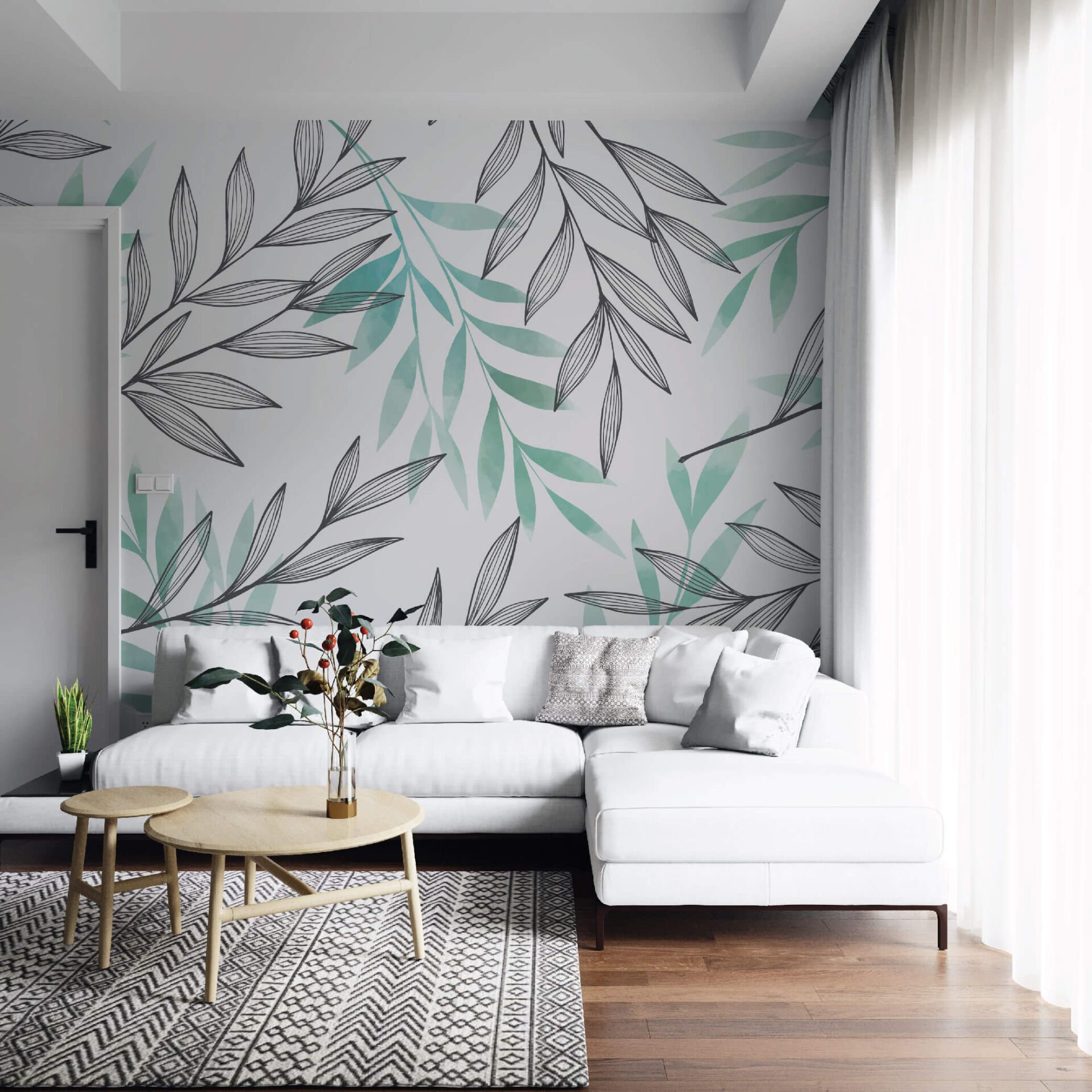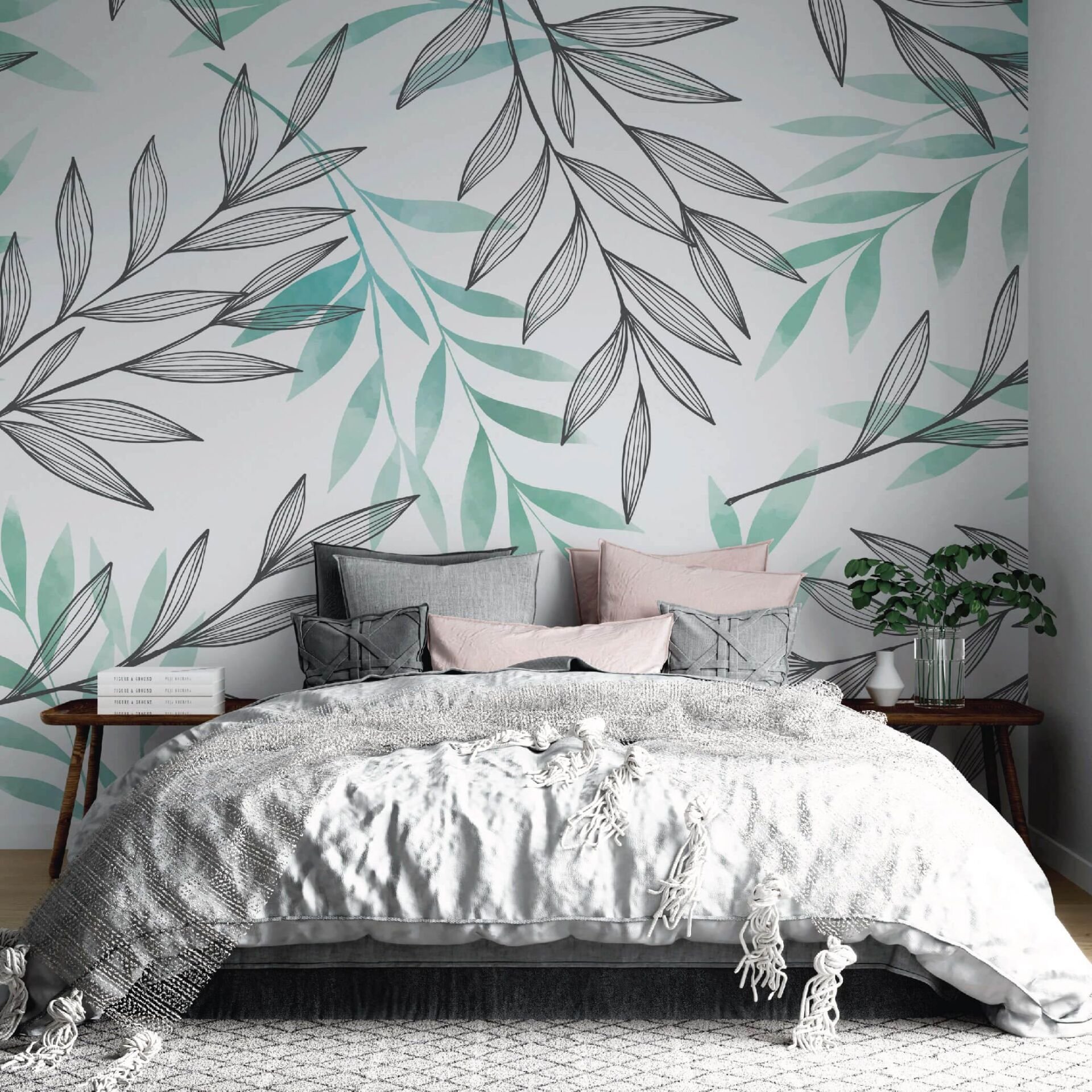 Soft Yeşil Yapraklar Yatak Odası Duvar Kağıdı