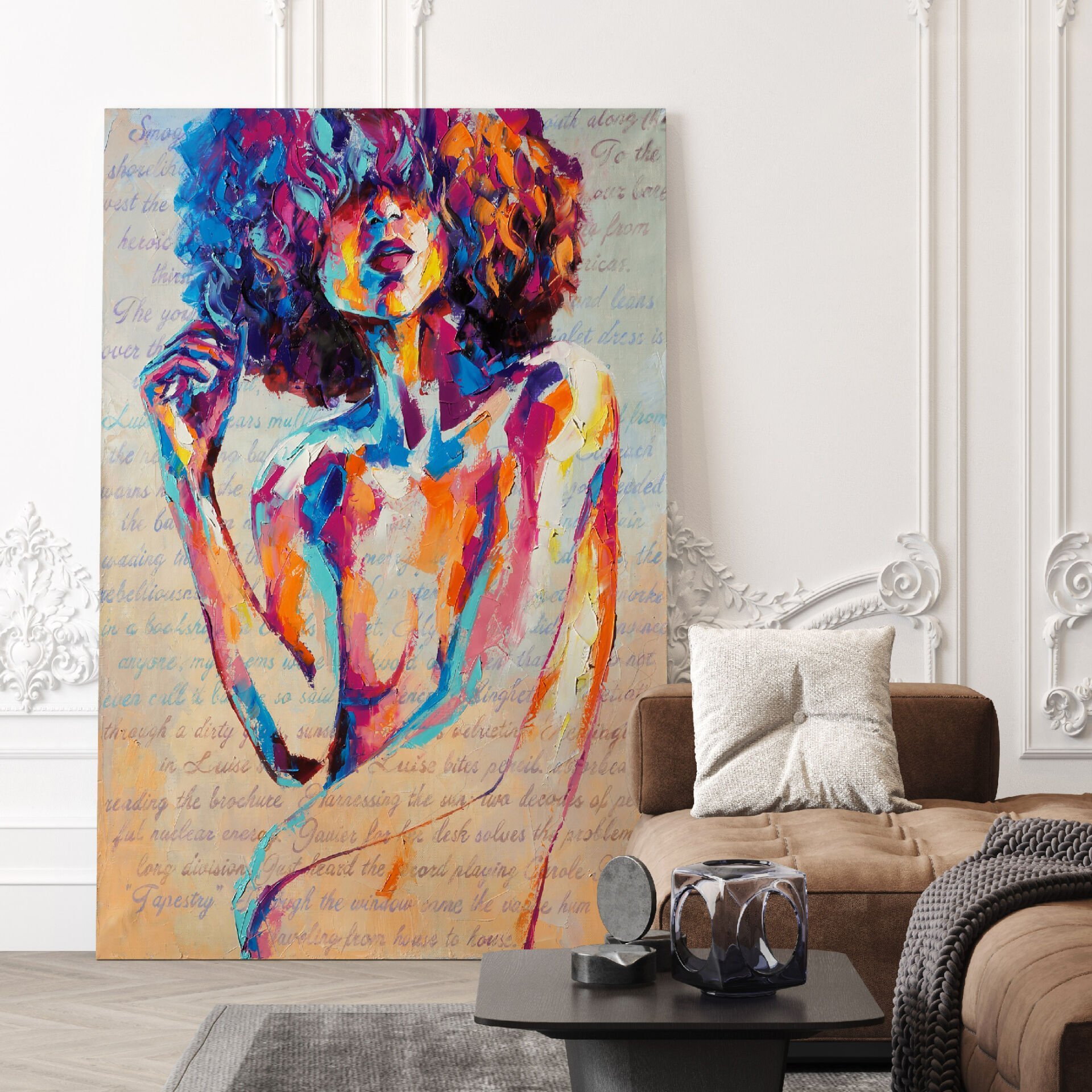 Soyut Renkli Saçlı Soyut Dekoratif Kadın Kanvas Tablo