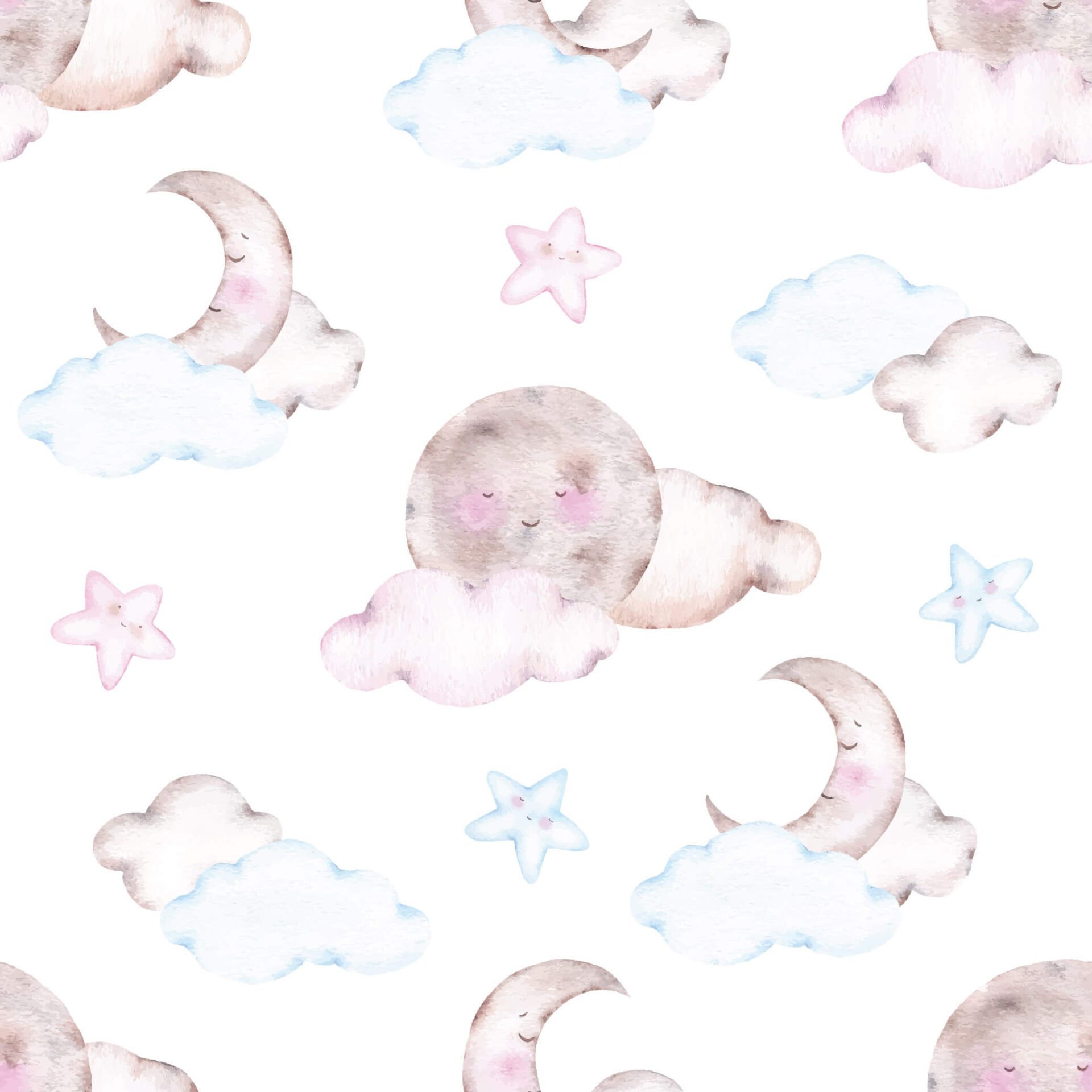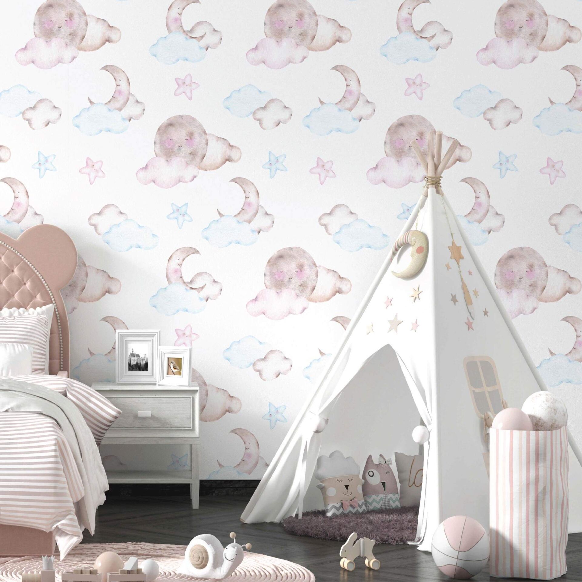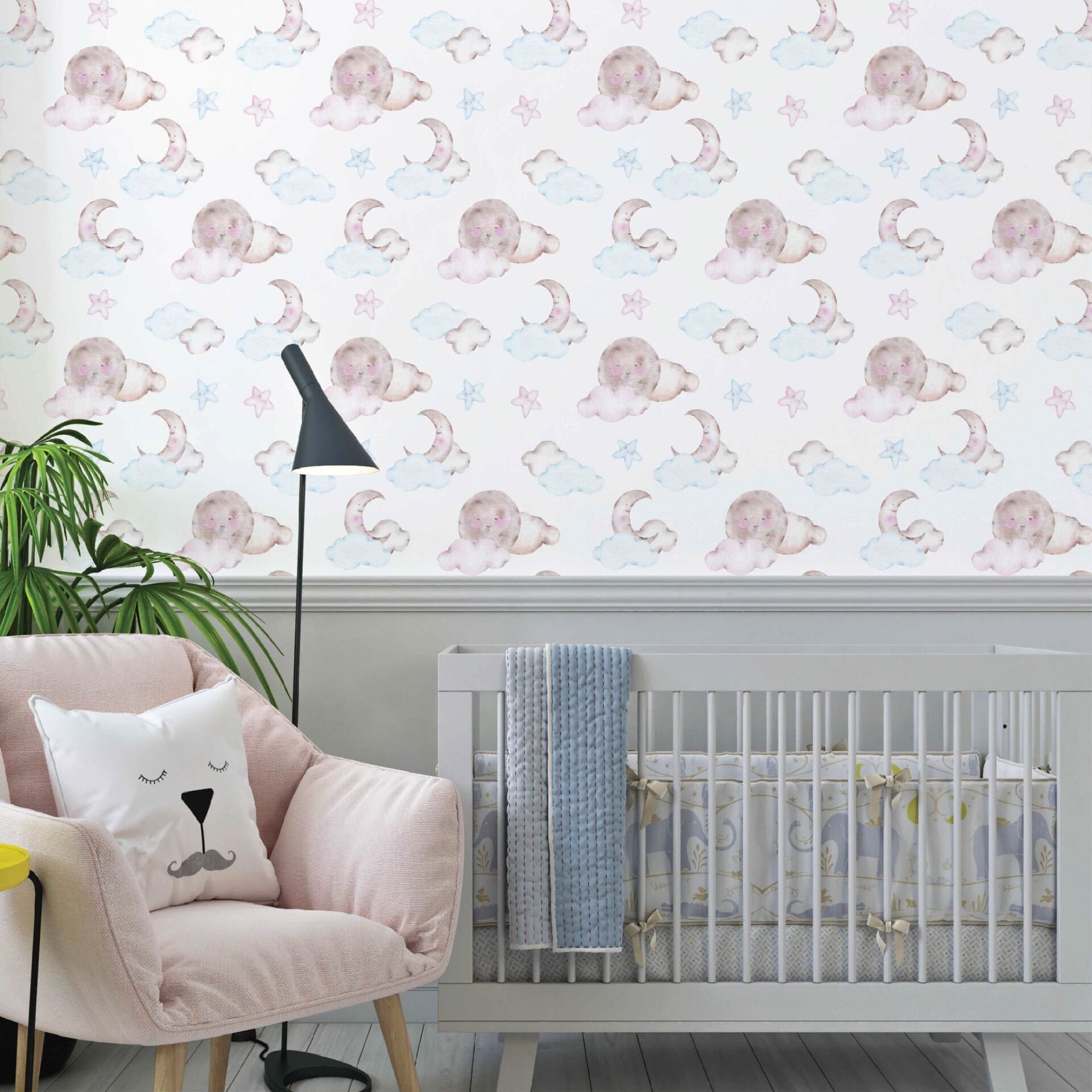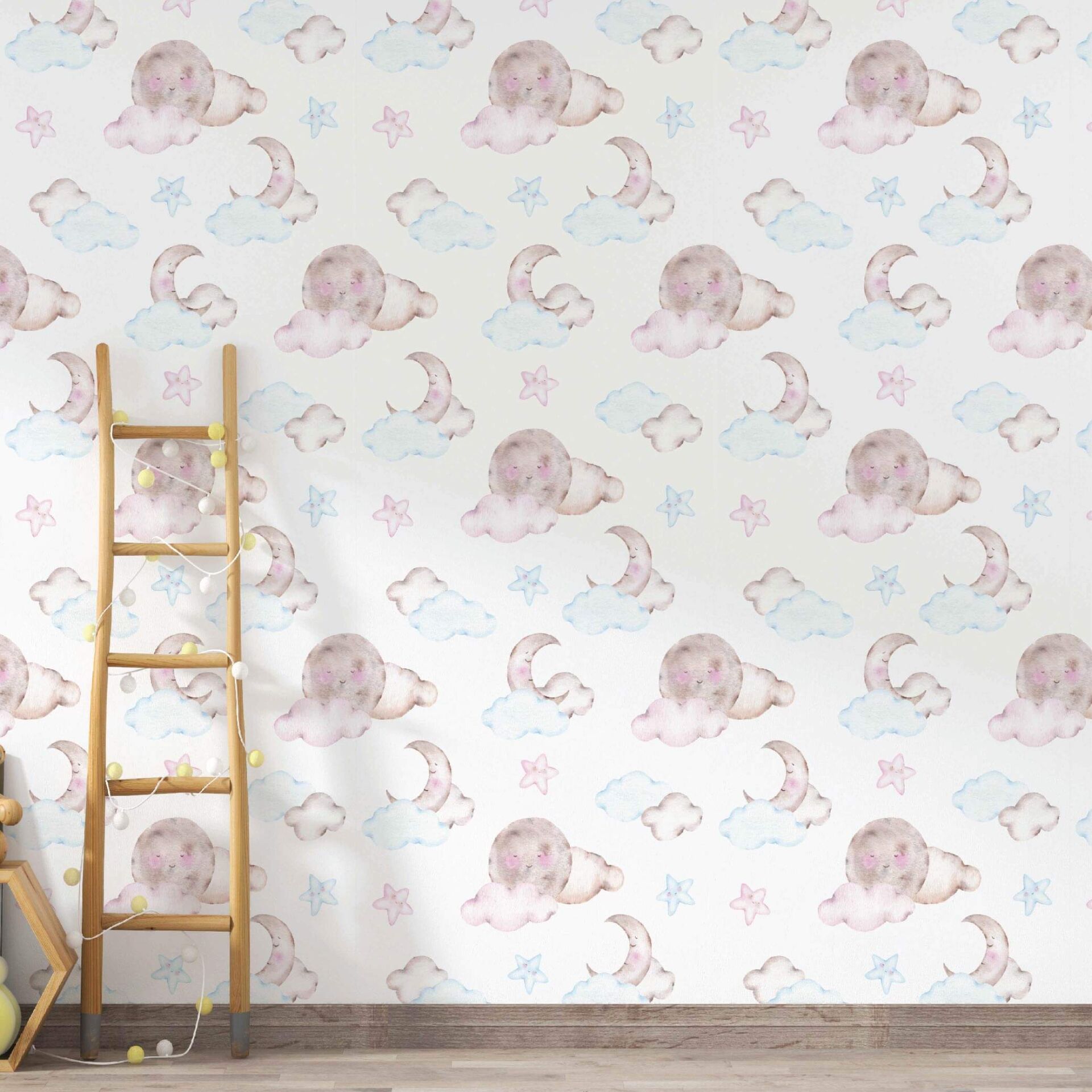 Uyuyan Ay Bebek Çocuk Odası Duvar Kağıdı