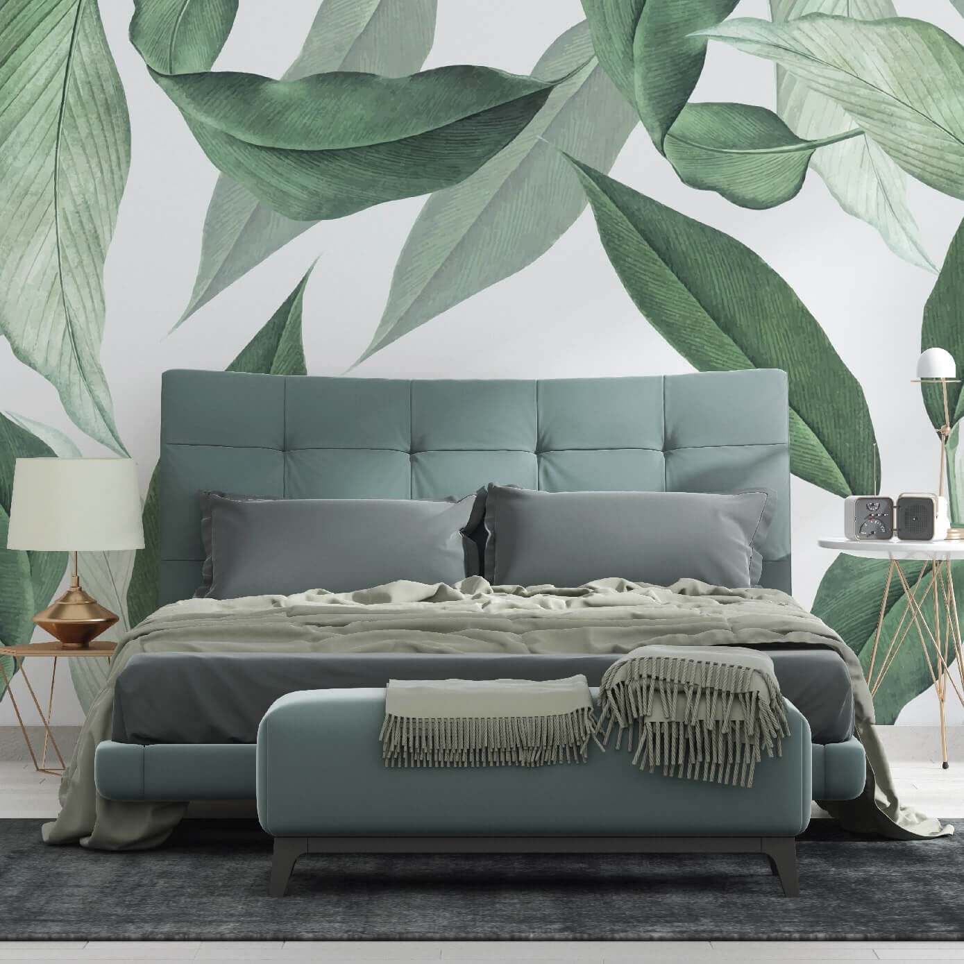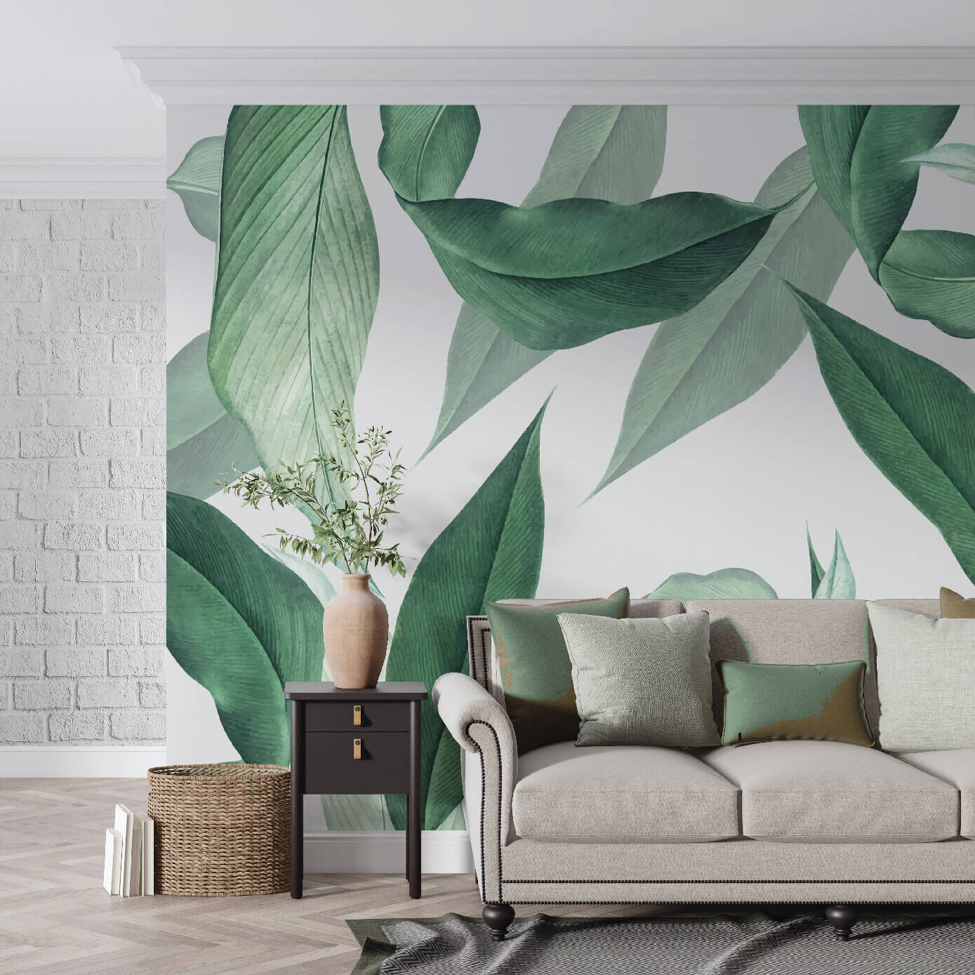 Yeşil Tropikal Yapraklar Salon Yatak Odası Duvar Kağıdı