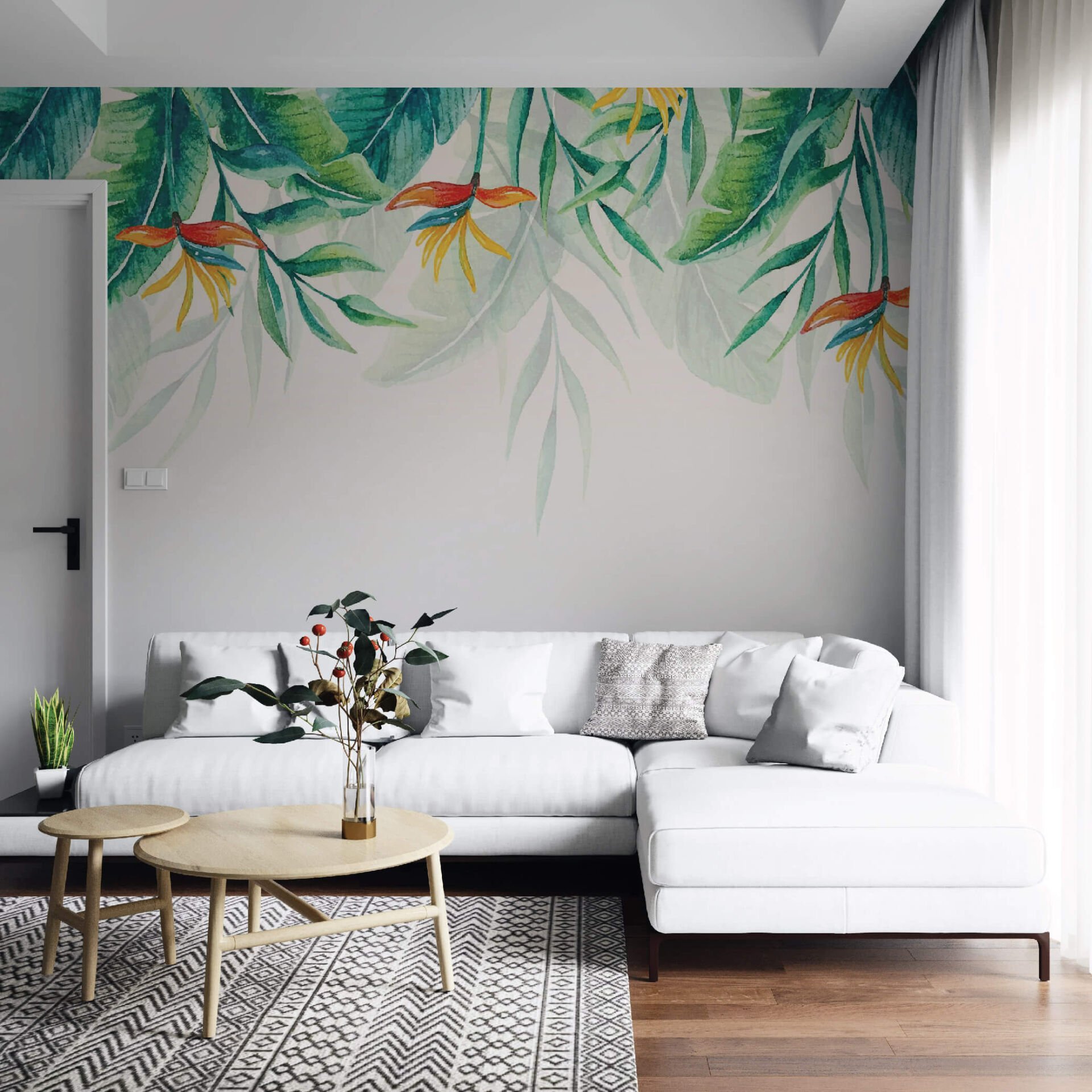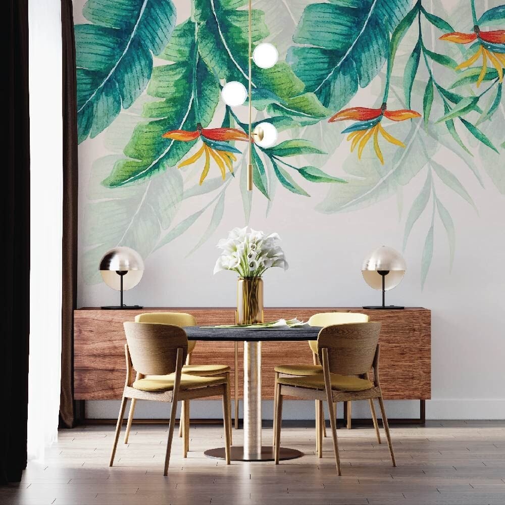 Yeşil Yapraklar Salon Ofis Mutfak Duvar Kağıdı
